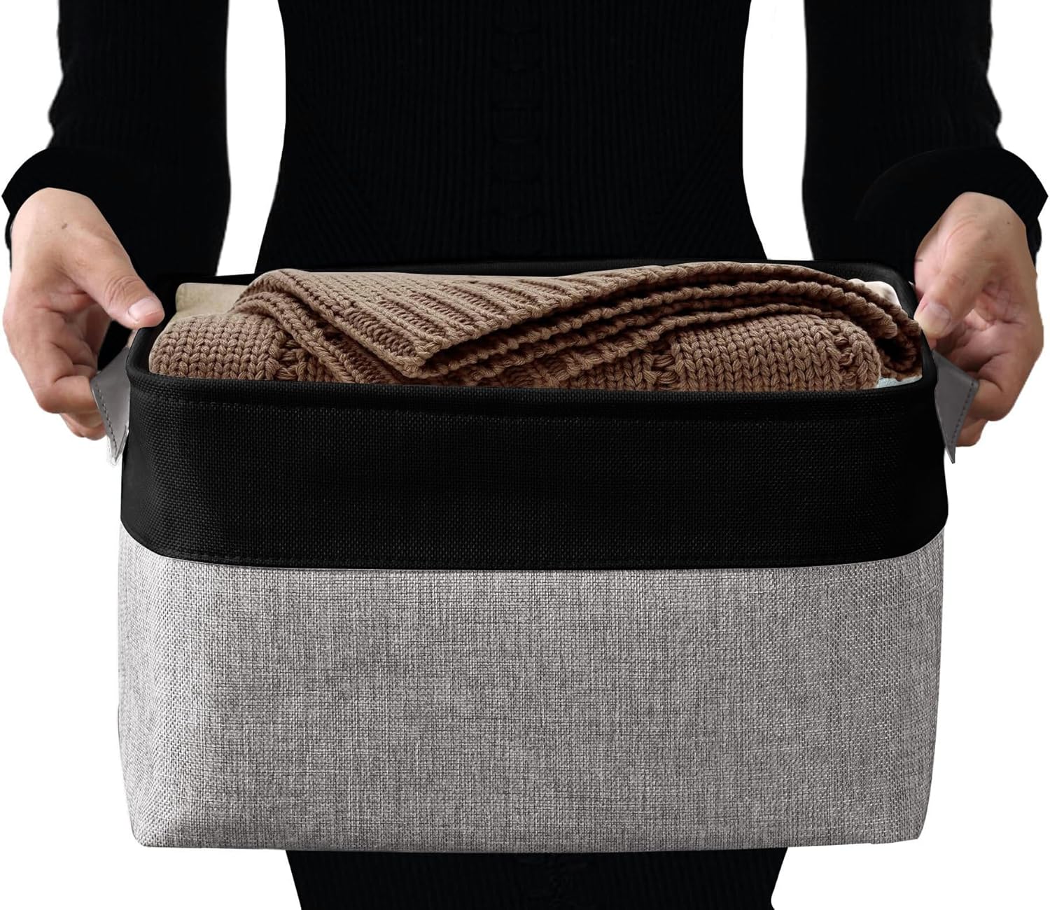 - Sturdy Construction: DECOMOMO closet storage bins are reinforced with upper metal frame and 2.5mm MDF fiberboard bottom to keep the baskets upright. Comes with dual faux leather handles with the weight bearing capacity of 25 lbs.