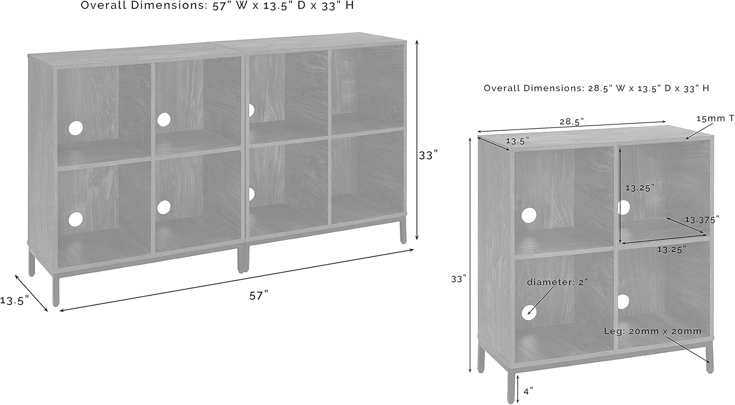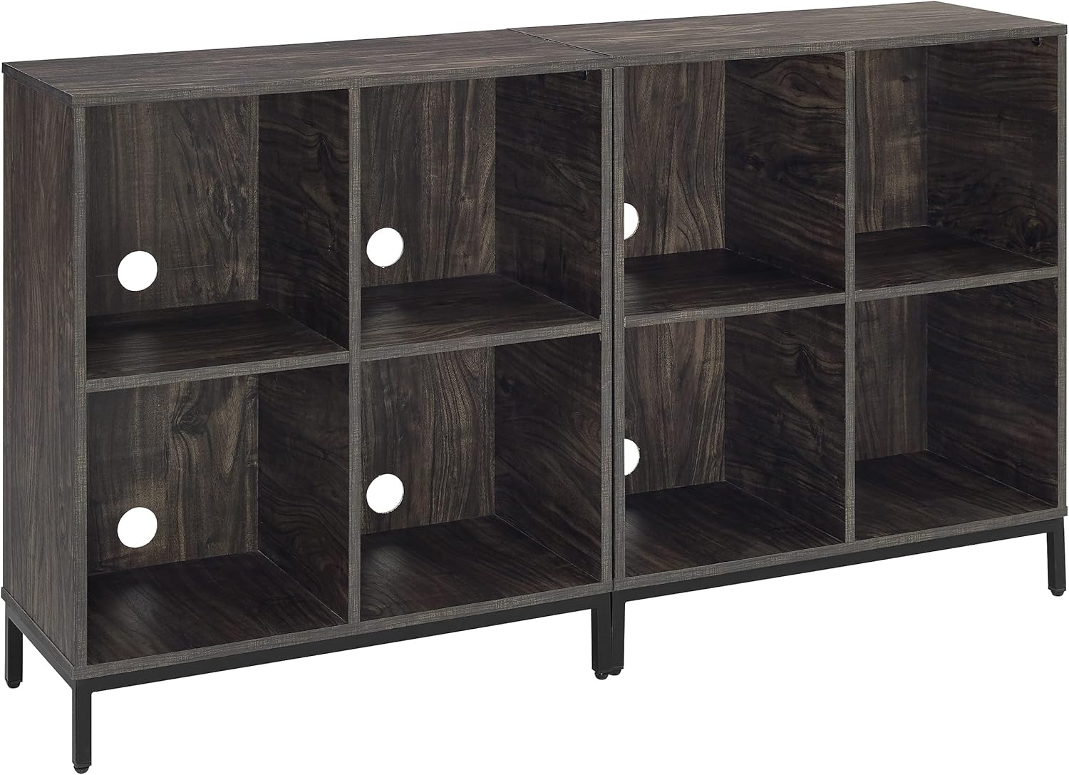 Crosley Furniture Jacobsen 2-Piece Vinyl Record Storage Cube Bookcase Set and Record Player Stand, Brown Ash