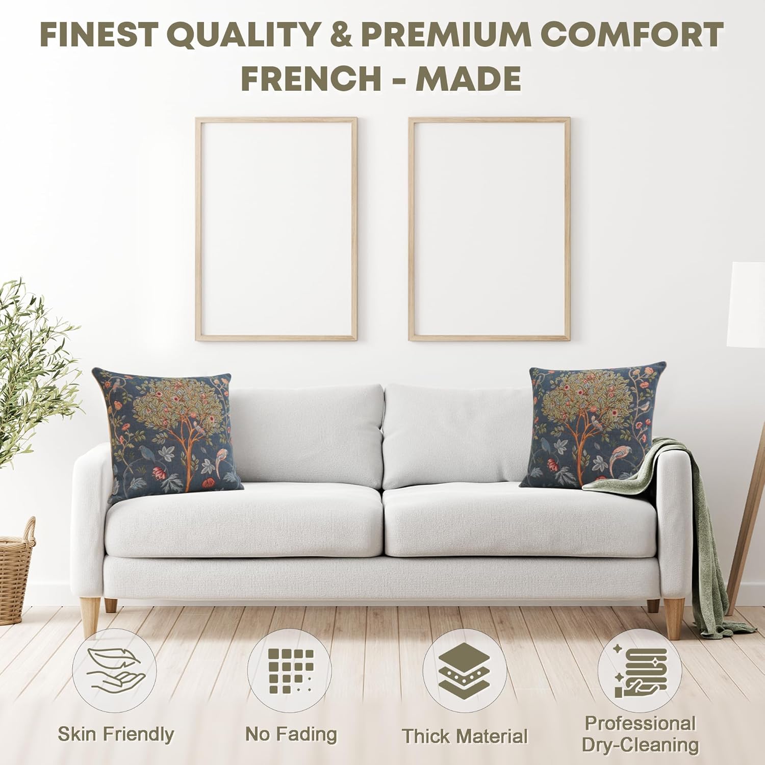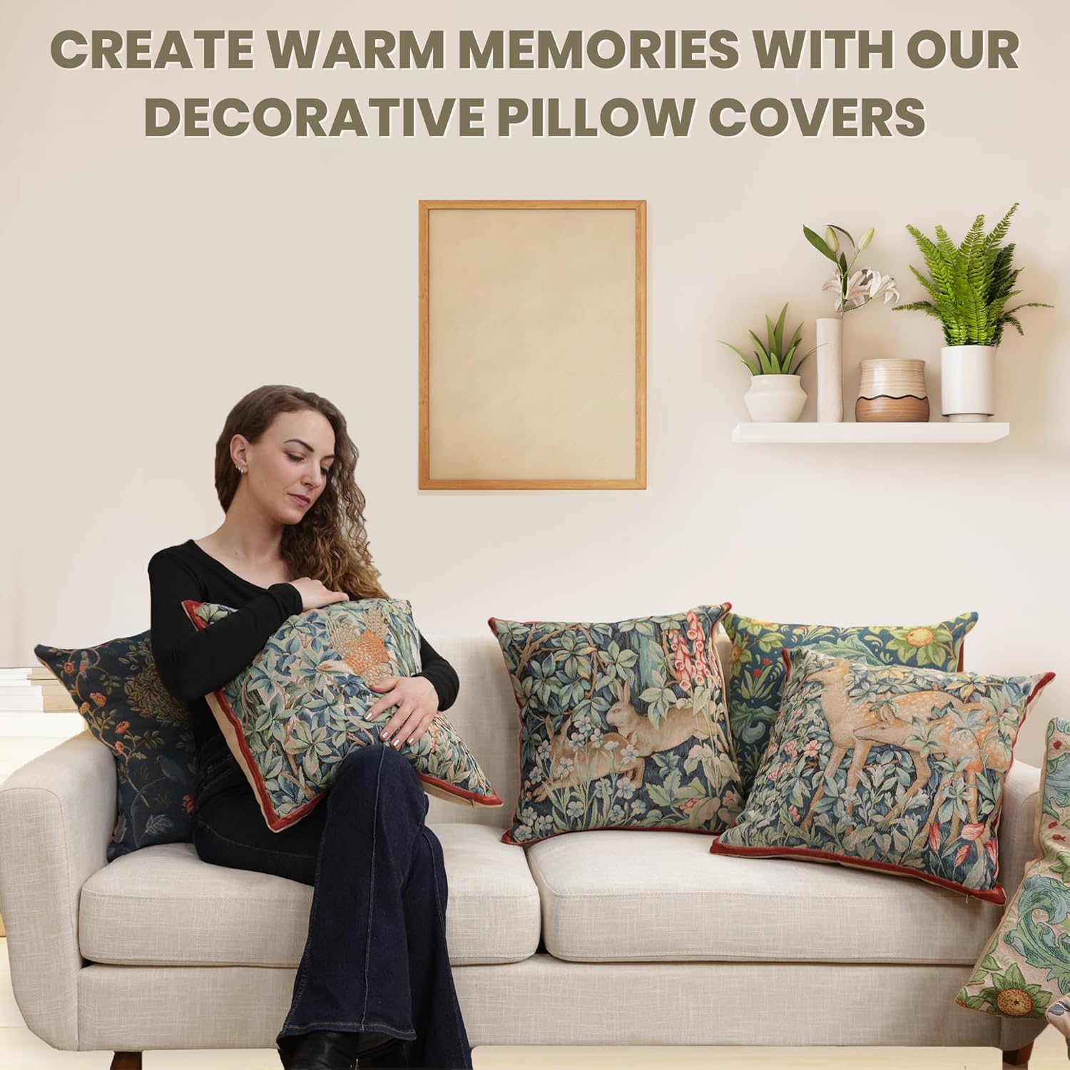 - Timeless Durability: Elevate your decor with our skin-friendly William Morris pillow covers 19āX19ā, where quality and style come together. A sturdy hidden zipper ensures easy pillow insertion/removal, while the overlock stitches prevent seam ripping. Unlike thin printed cushion covers prone to tearing, our decorative pillows for couch with a super-soft backside are crafted with thick premium threads for long-lasting quality. THE PACKAGE INCLUDES A SINGLE TAPESTRY PILLOW COVER WITHOUT AN INSERT