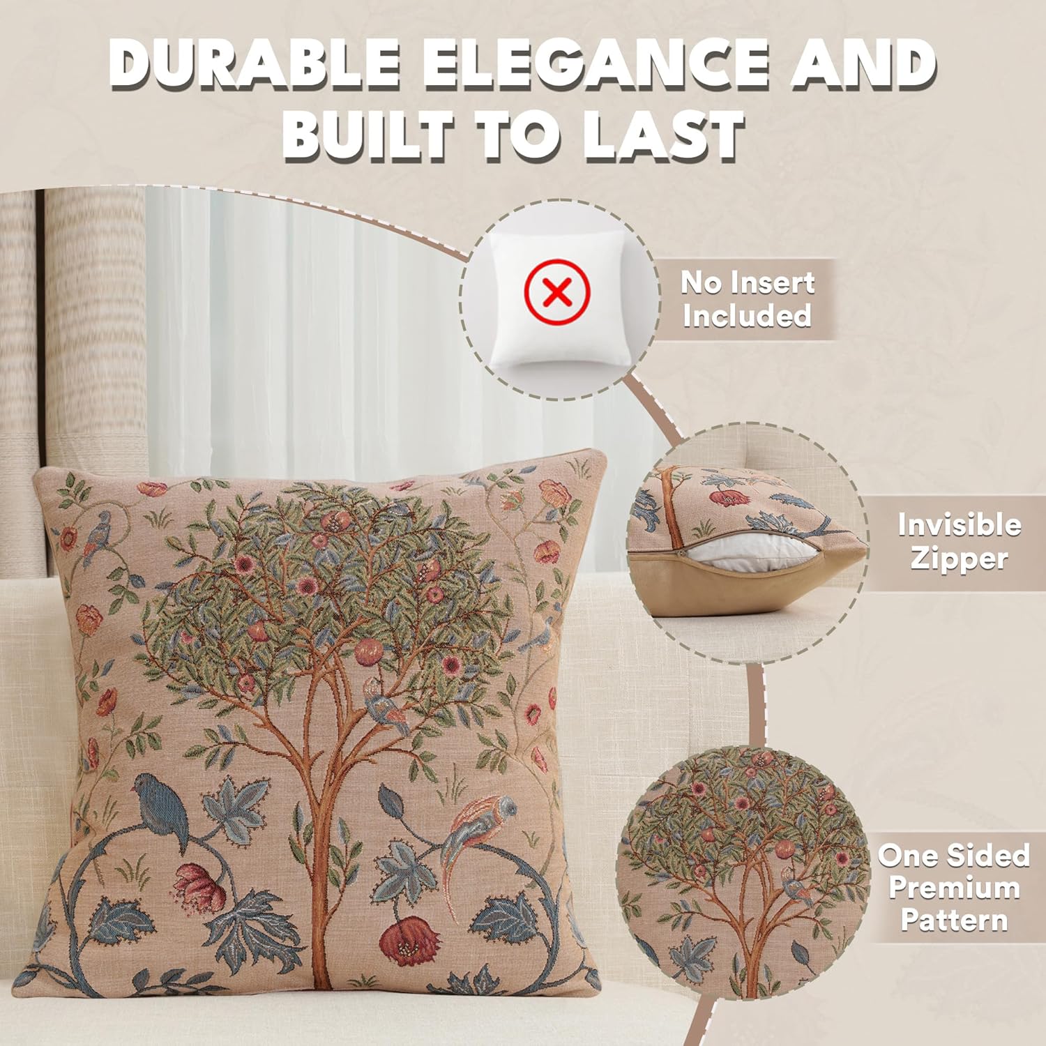 - Timeless Durability: Elevate your decor with our skin-friendly William Morris pillow covers 19āX19ā, where quality and style come together. A sturdy hidden zipper ensures easy pillow insertion/removal, while the overlock stitches prevent seam ripping. Unlike thin printed cushion covers prone to tearing, our decorative pillows for couch with a super-soft backside are crafted with thick premium threads for long-lasting quality. THE PACKAGE INCLUDES A SINGLE TAPESTRY PILLOW COVER WITHOUT AN INSERT