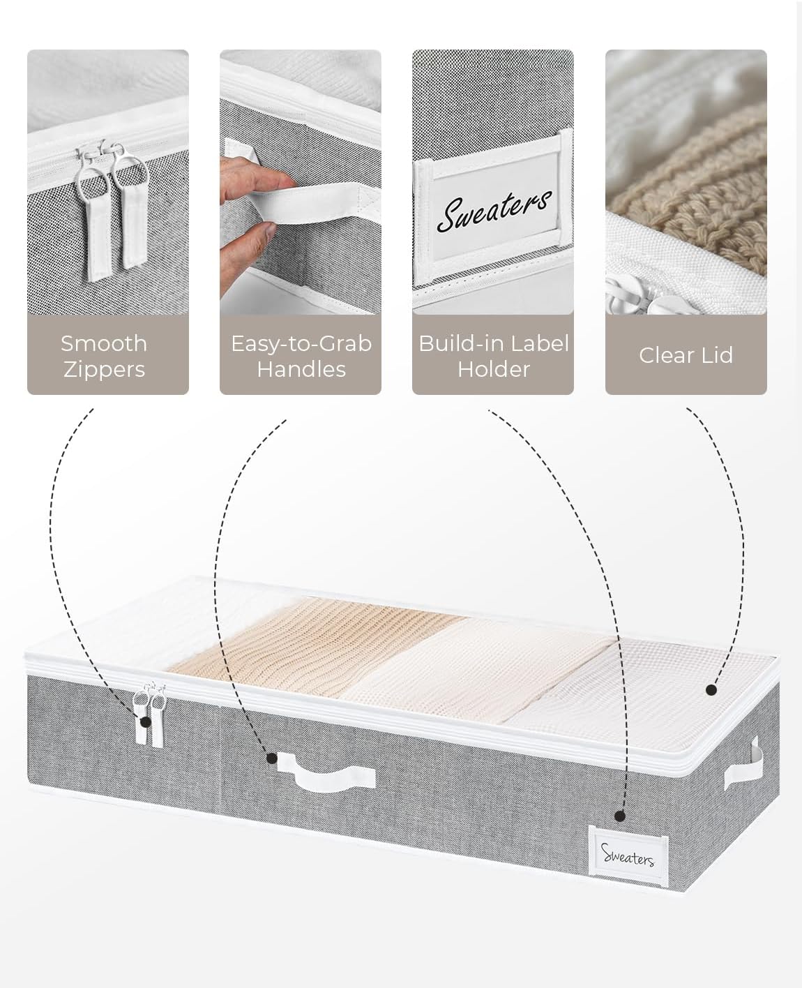 StorageWorks Large Under Bed Storage Containers with Handles and Label Holder, 2 Pack Ultra-thick Fabric Underbed Bins, Closet Organizer for Clothes, Blankets, Sweater