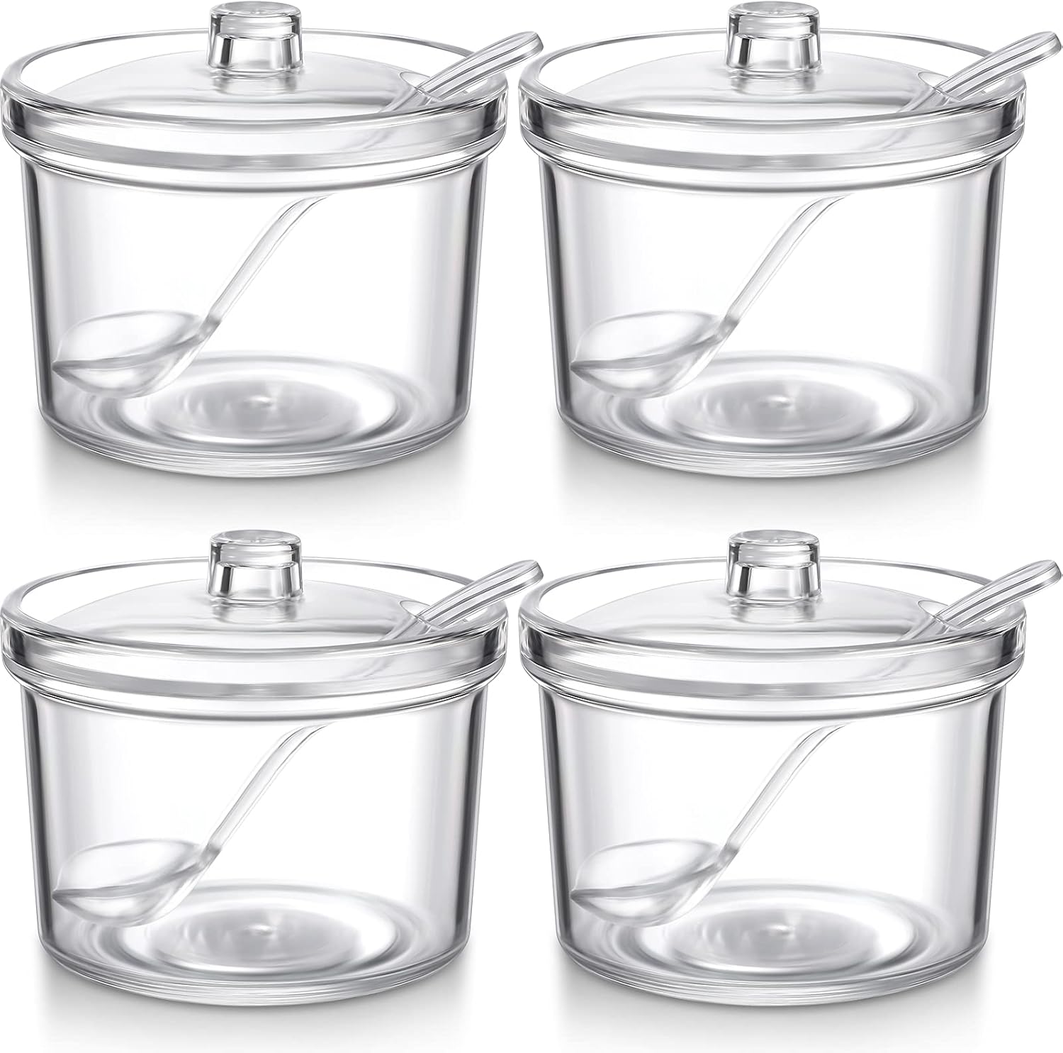 Patelai 4 Pieces Sugar Bowl Acrylic Clear Sugar Bowl with Lid and Salt Spoon Storage Jar with Airtight Lid for Salt, Tea, Spices, Herbs, Condiments(7.1 oz)