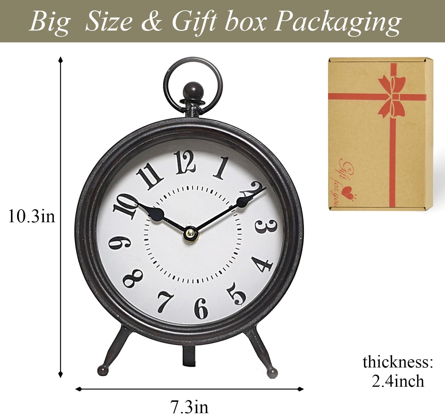 Vintage Black Table Clock on Stand, Decorative Desk and Shelf Clock, Rustic Mantel Clock Farmhouse Clock Non-Ticking