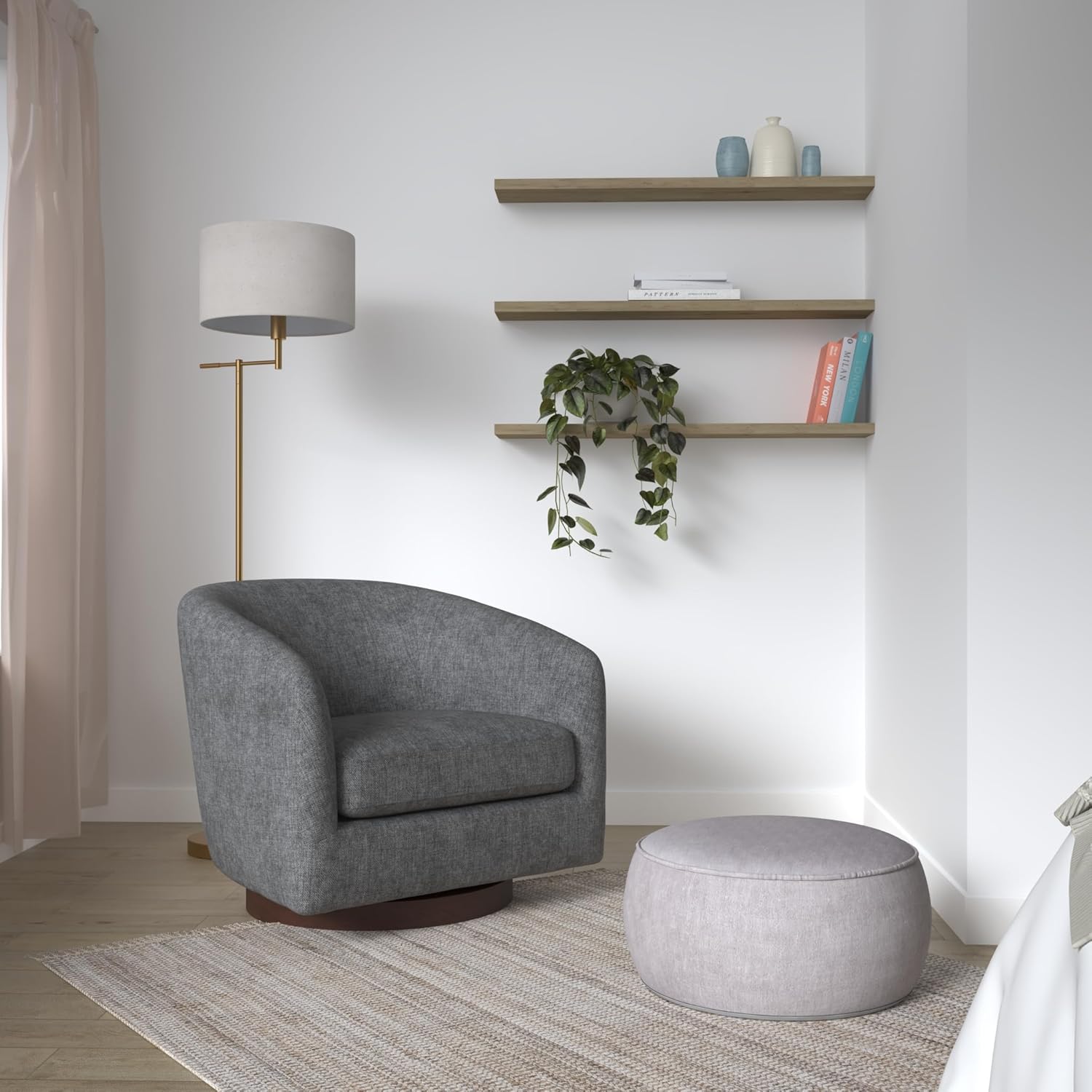 CHITA Swivel Accent Chair, FSC Certified Upholstered Fabric Barrel Chair for Living Room, Fully Assembled, Dark Grey