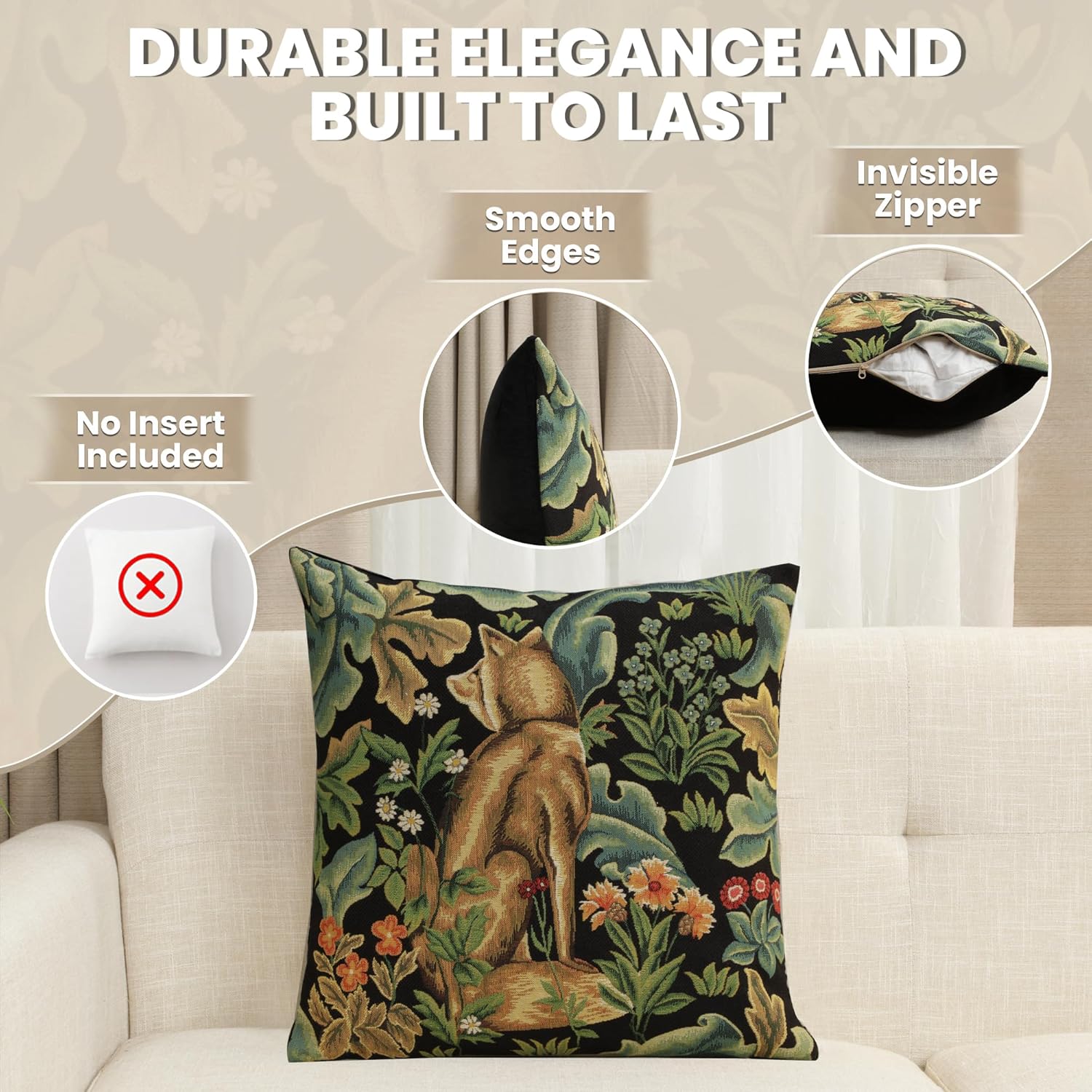 - Exclusive Design Excellence: The decorative pillow covers are made of high-quality jacquard woven fabric, 100% cotton for extreme comfort and durability. The designs of these William Morris pillow covers are woven with precision using the most vibrant colors. The zippers are hidden and overlock stitch seams create an appearance of sophistication while providing durability for any home decor