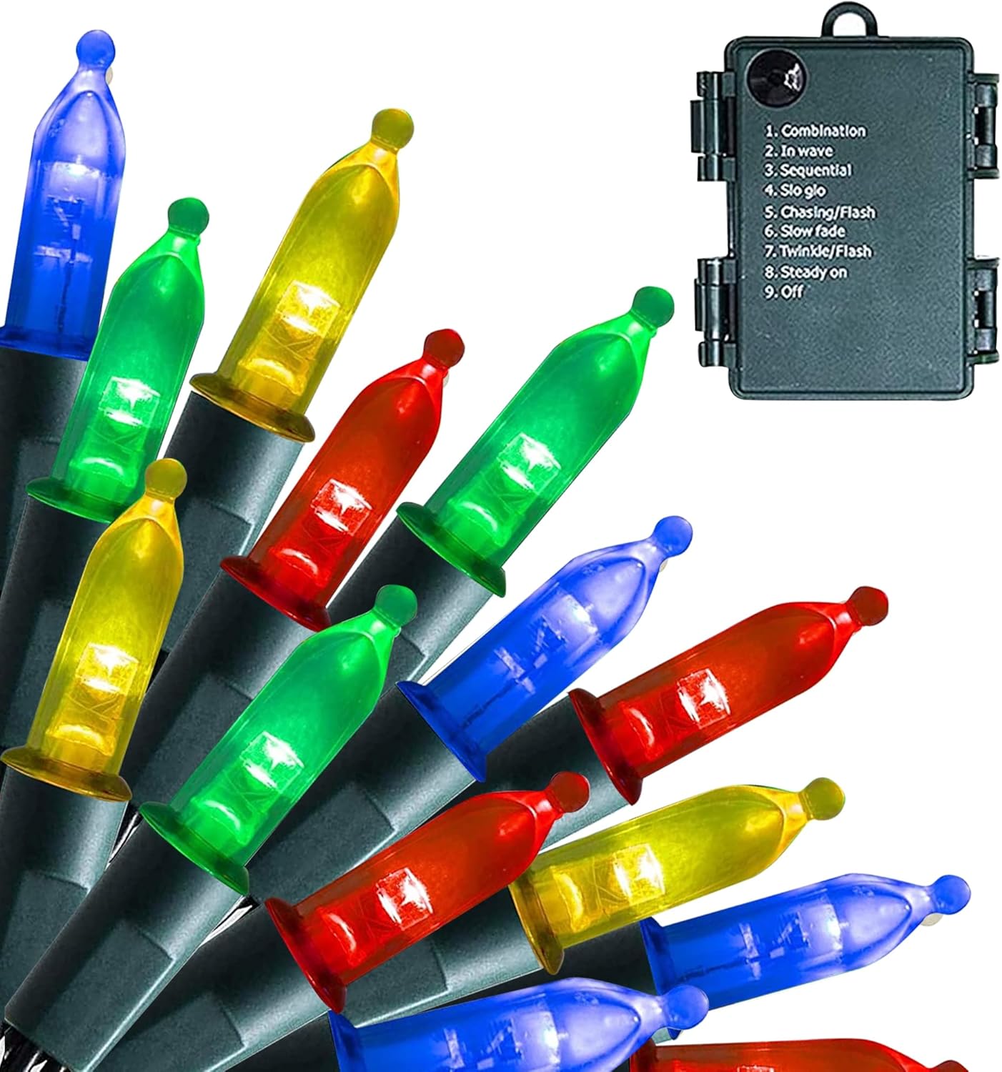 Dazzle Bright 50 LED Batter Operated Christmas Lights, 16 FT Waterproof Mini String Lights with 8 Modes for Xmas Indoor Outdoor Yard Garden Holiday Wedding Decorations (Multi Colored)