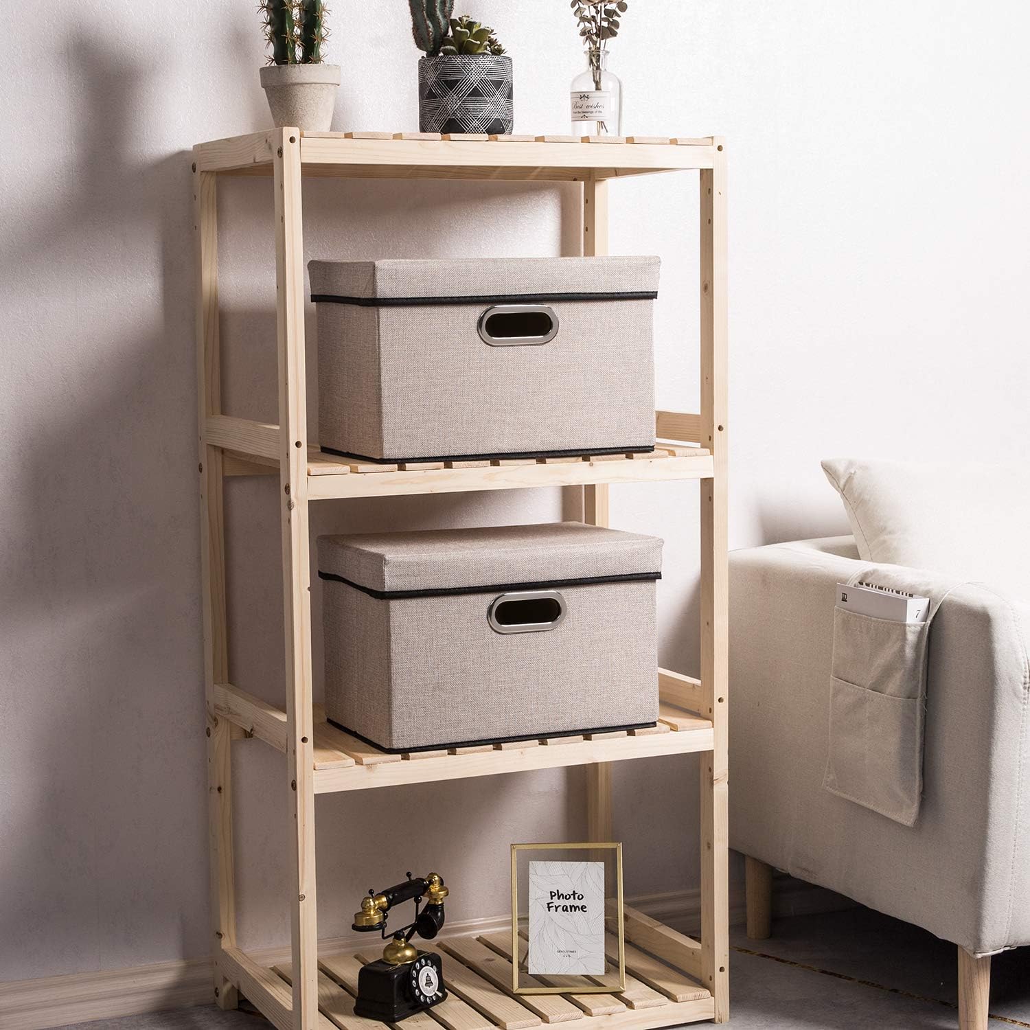 PRANDOM Foldable Storage Bin with Lid [5-Pack] Linen Fabric Decorative Storage Box Organizer Container Basket Cube with Handles Divider for Closet Office Living Room Light Grey(14.9x9.8x9.8)