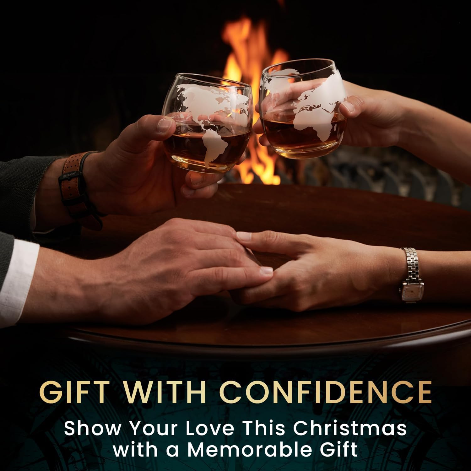 Globe Whiskey Decanter Gift Set by Royal Reserve | Etched World Map Globe Decanter 29 oz 850 ml with Glasses for Bourbon, Liquor – Whiskey Gifts for Men Dad Boyfriend Husband
