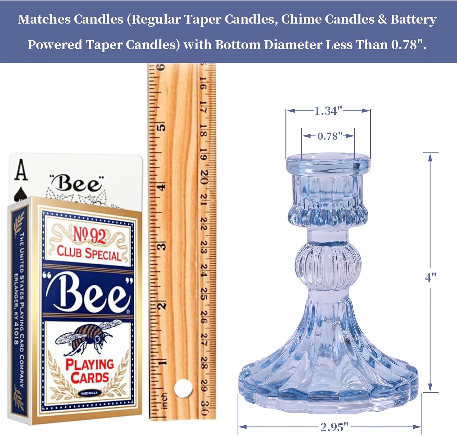 - blue taper c[Quantity & Size]-- You will get 12pcs blue candlestick holders set, here is enough quantity for your daily use and never worry about what if one is broken. The top inner diameter 0.78'', bottom diameter is 2.95''x 4''H. Conveniently sized candle holder are suitable for many kinds of taper candles.andle holder