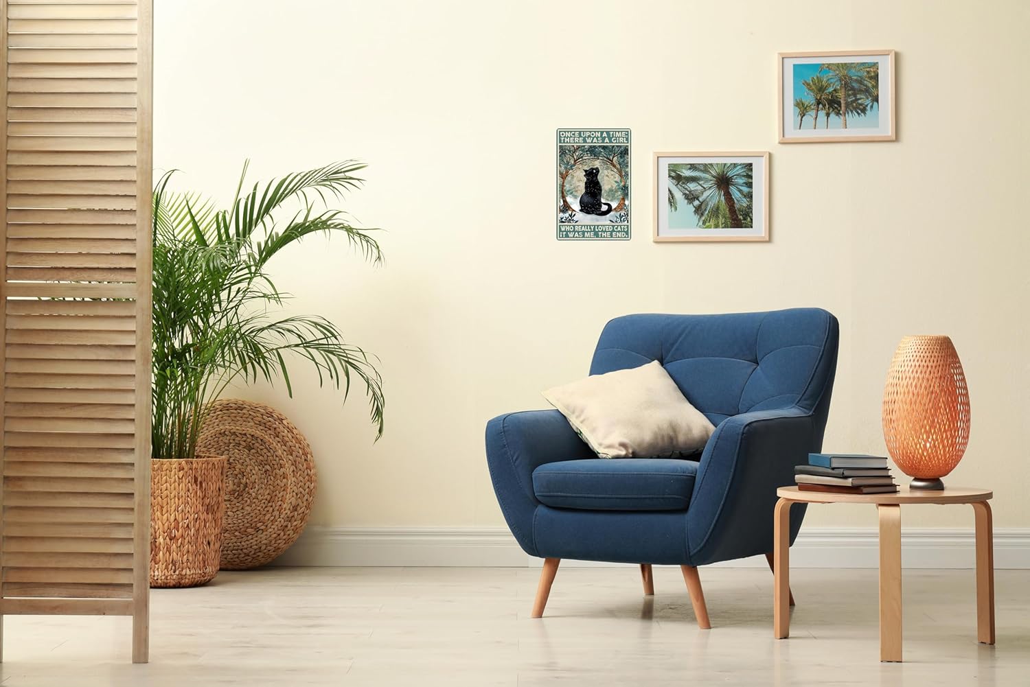 Black Cat Decor Vintage Metal Tin Sign Black Cat Once Upon a Time There was a Girl Poster Art Decor Home Bar Poster Cute Posters Cat Posters 12 x 8 Inch