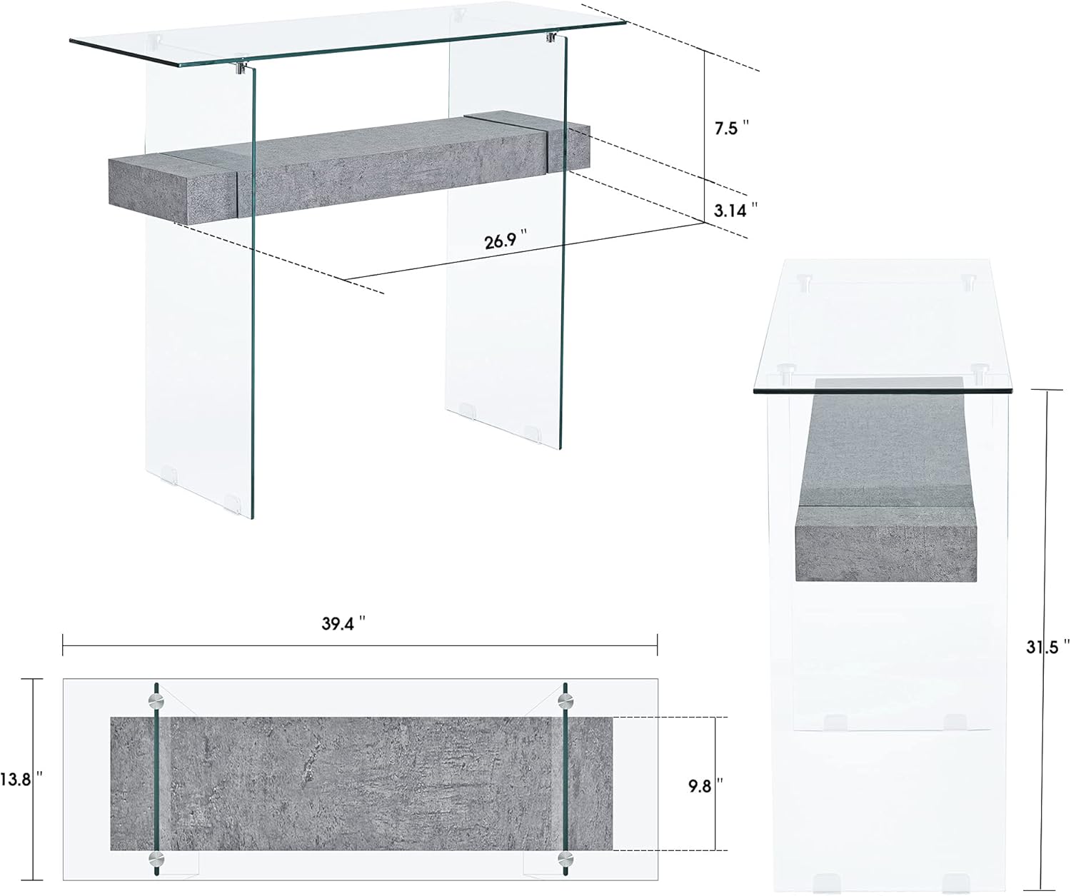 ivinta Glass Console Table with Storage, 39.4" Modern Entryway Table for Living Room, Foyer, Hallway, Bedroom 5101 (Gray)