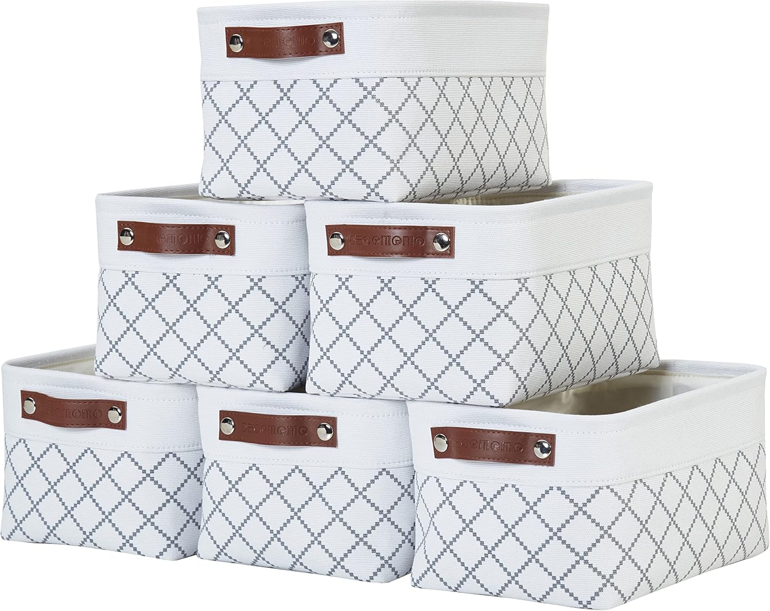 DECOMOMO Small Storage Basket, Closet Storage Bins, Baskets for Organizing Shelves (White Check, Small - 6 Pack)