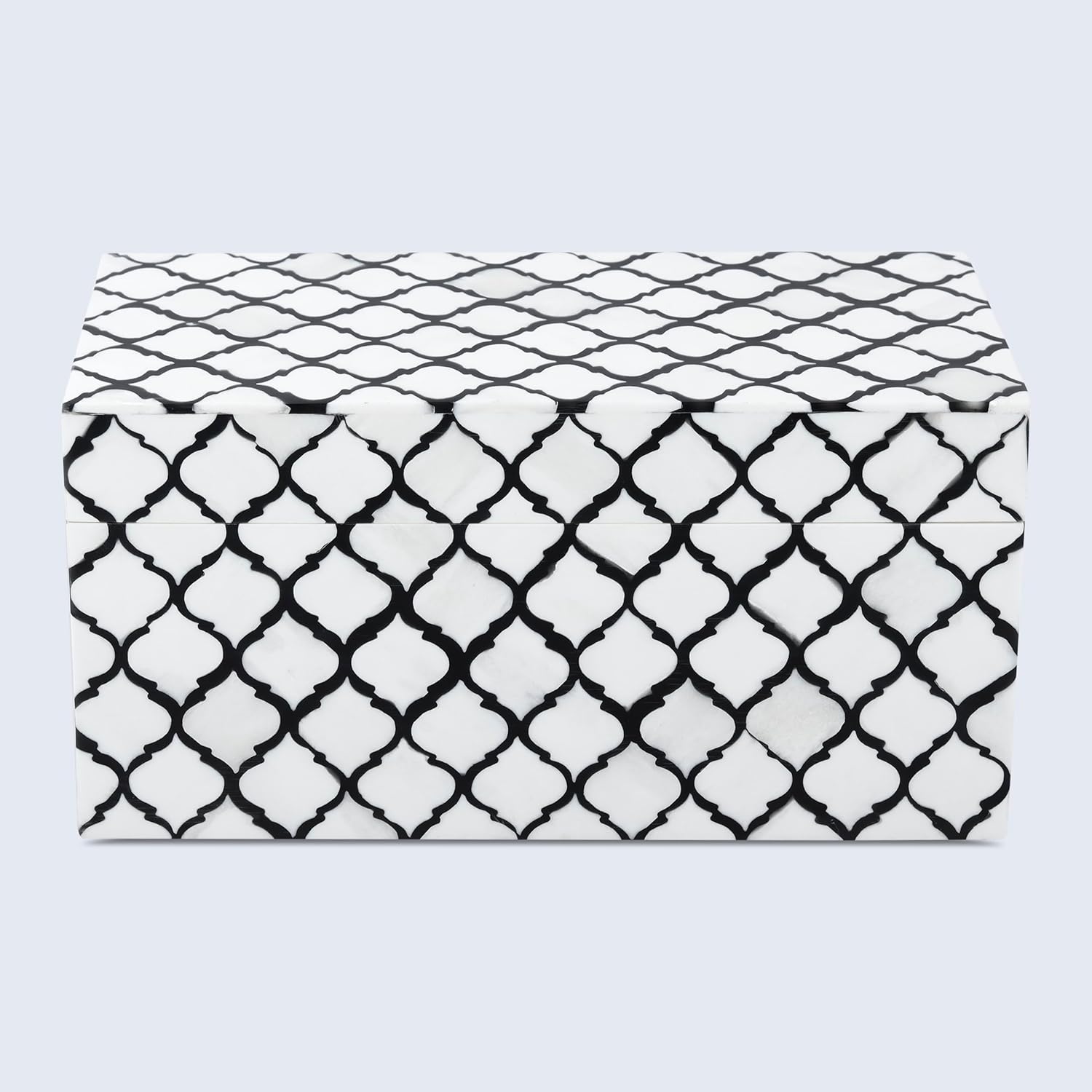 Handicrafts Home Handmade Moroccan Pattern Inspired Decorative Box - Large Storage Organizer for Neck Chains, Watches, Memory Keepsakes - Boho Style Treasure Box, Multipurpose Gift - B&w, 10x5x5