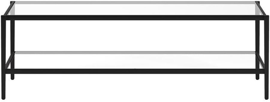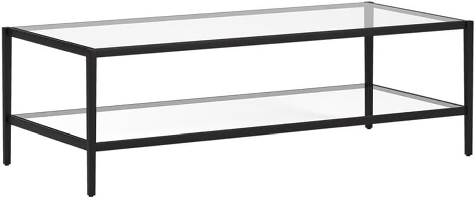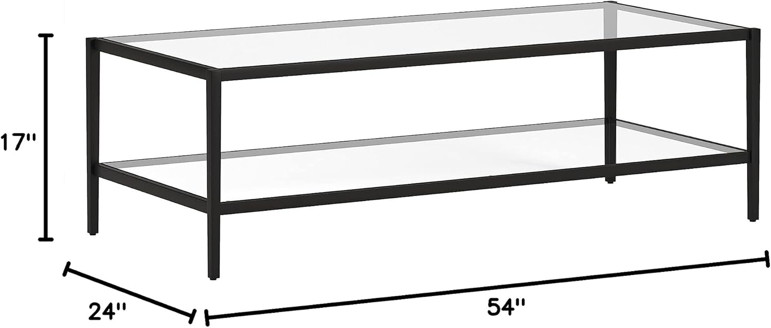 Henn&Hart 54" Wide Rectangular Coffee Table with Glass Shelf in Blackened Bronze, Modern coffee tables for living room, studio apartment essentials