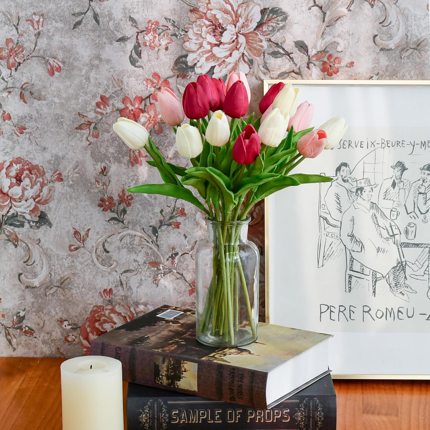 Mandy's Artificial Tulips 20 Stems Shades of Pink PU Faux Flowers for Wedding Home Decor 13.5 Inch