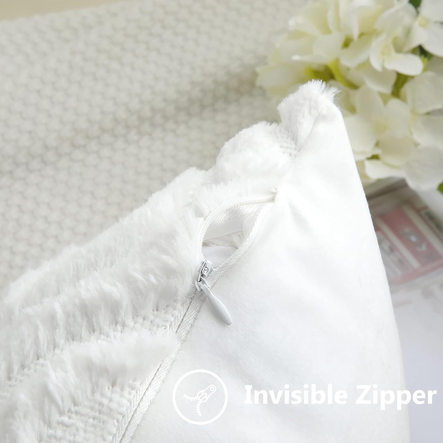 decorUhome Fall Throw Pillow Covers 12x20 Inch Set of 2, Soft Plush Decorative Faux Fur White Solid Couch Pillow Covers, Accent Farmhouse Neutral Lumbar Euro Pillow Cases for Sofa Bed Living Room