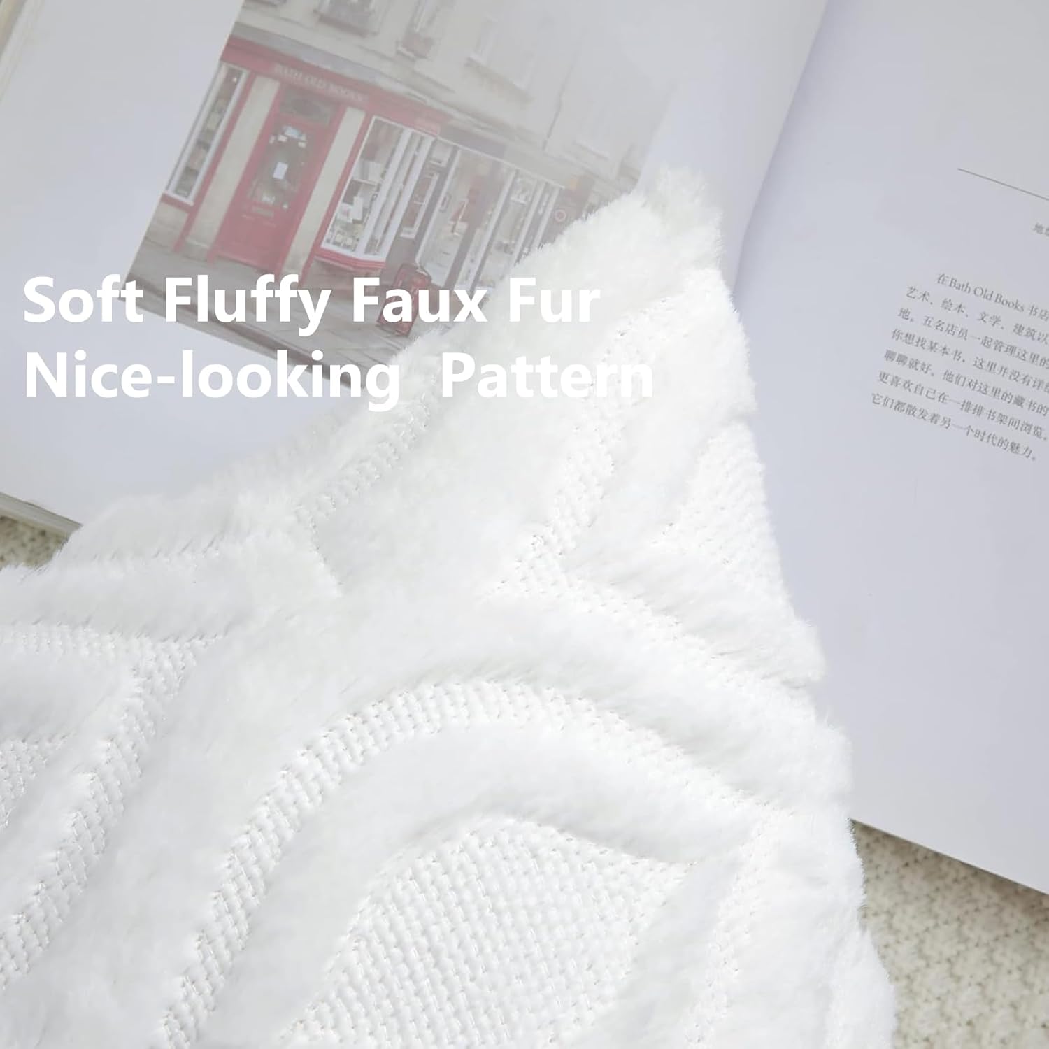 decorUhome Fall Throw Pillow Covers 20x20 Inch Set of 2, Soft Plush Decorative Faux Fur White Solid Couch Pillow Covers, Accent Farmhouse Neutral Square Euro Pillow Cases for Sofa Bed Living Room