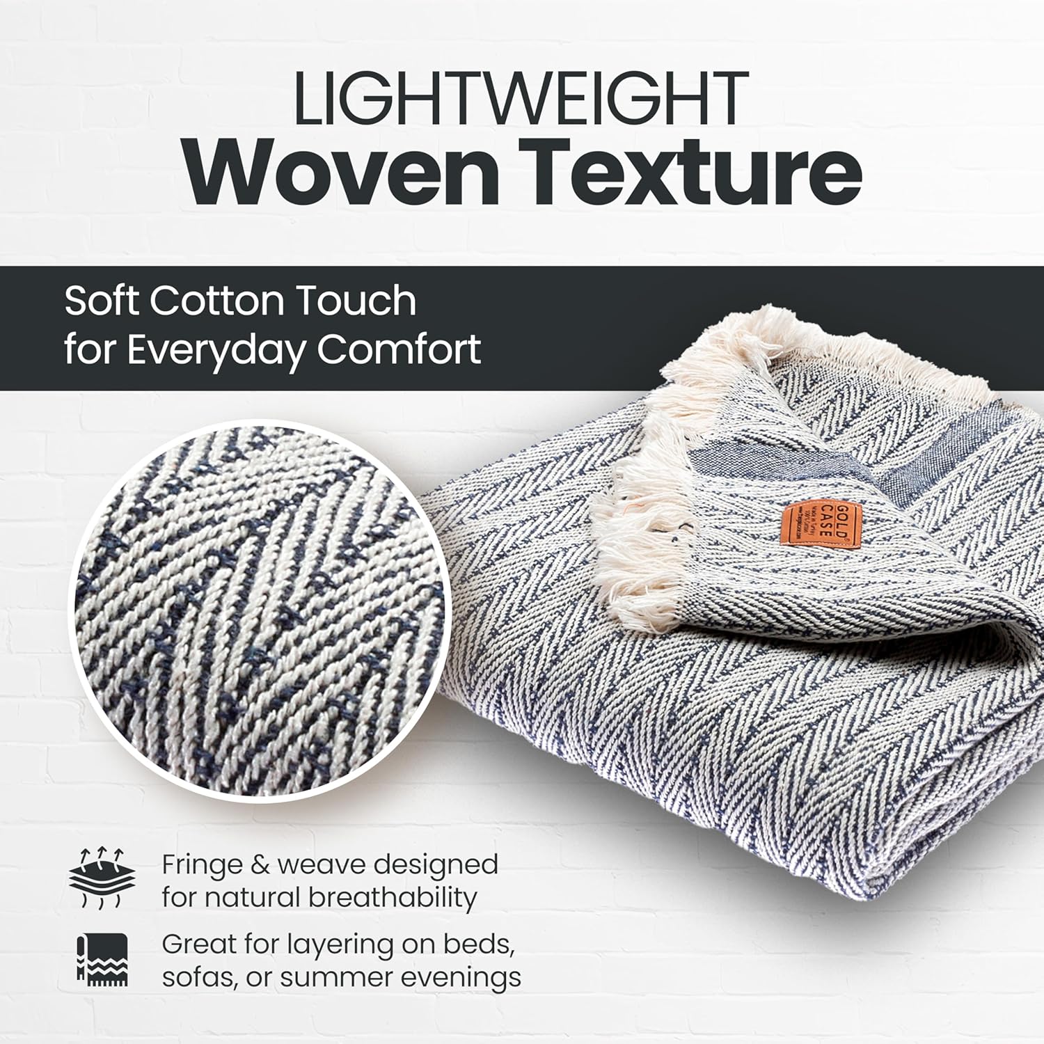 Gold Case Throw Blanket for Couch – 100% Recycled Turkish Cotton Blankets & Throws – Elegant Decorative Throw Blankets for Living Room Sofa – Woven Throws for Couch – Vintage Navy Blue – 50x60