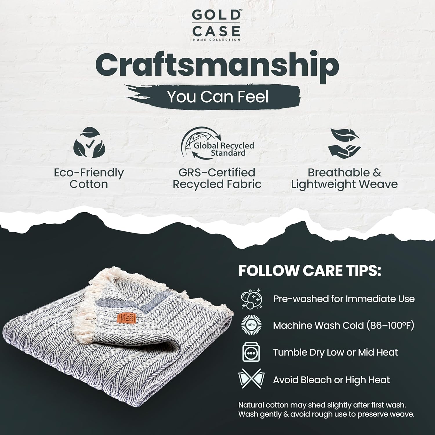 Gold Case Throw Blanket for Couch – 100% Recycled Turkish Cotton Blankets & Throws – Elegant Decorative Throw Blankets for Living Room Sofa – Woven Throws for Couch – Vintage Navy Blue – 60x80
