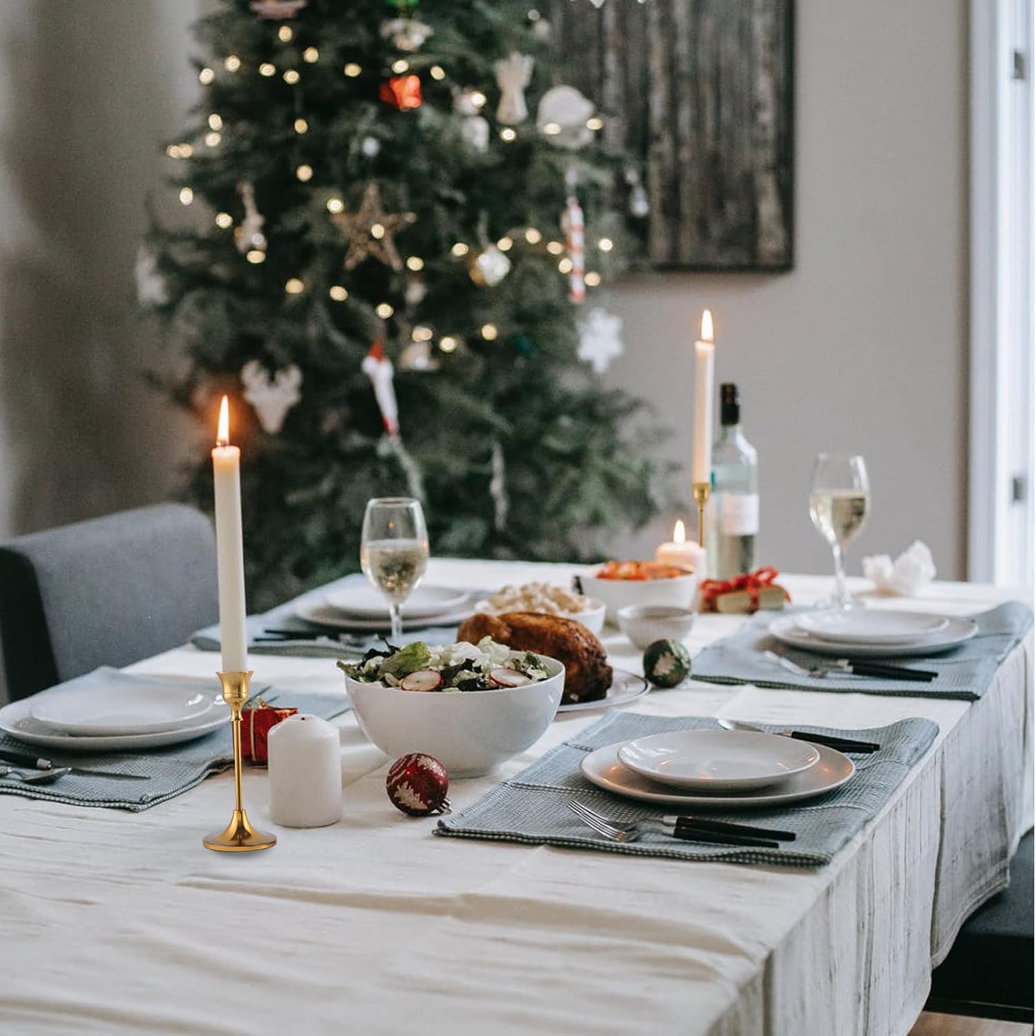 - đăSturdy and Stable Brass candlestick holdersăMade of solid, durable, high-quality aluminum alloy materialďźthis candlestick holder is durable and sturdy enough to hold tall taper candles. Each Gold candlestick holder set can fit 3/4 inch and 7/8 inch small pillar candles as well as LED cone candles to match your dining table decor.It provides a stable base for your candles,ensures stability and longevity for your candles.