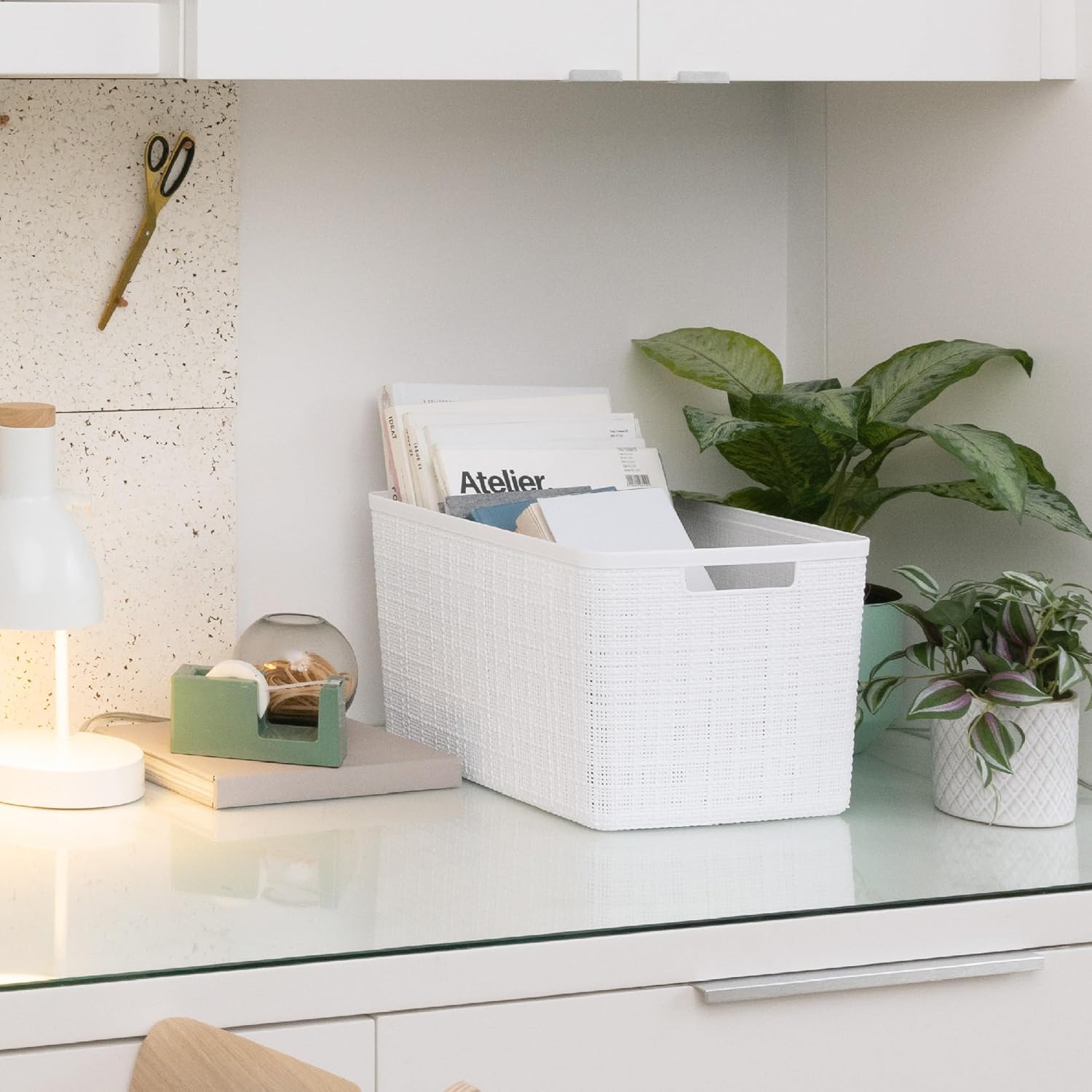 Curver Set of 4 Jute Large Decorative Plastic Organization and Storage Baskets, Perfect Bins for Home Office, Closet Shelves, Kitchen Pantry and All Bedroom Essentials, White