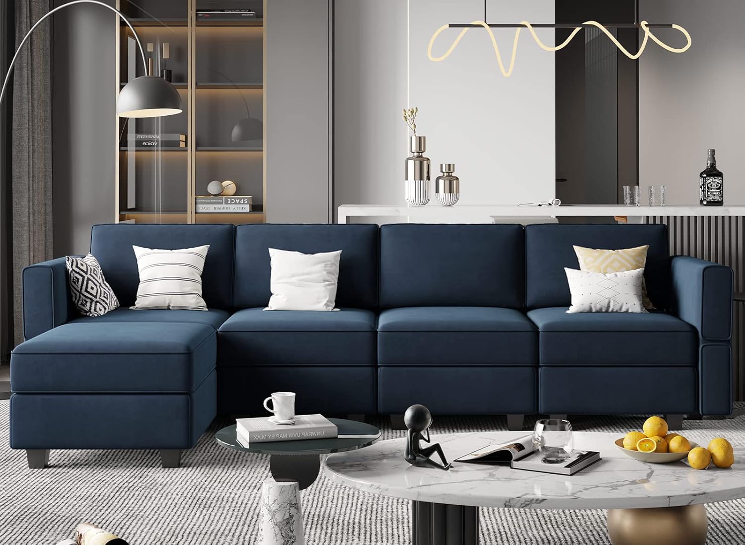 Belffin Modular Sectional Sofa Couch with Reversible Chaise Velvet L Shaped Storage 4-seat Convertible Blue…