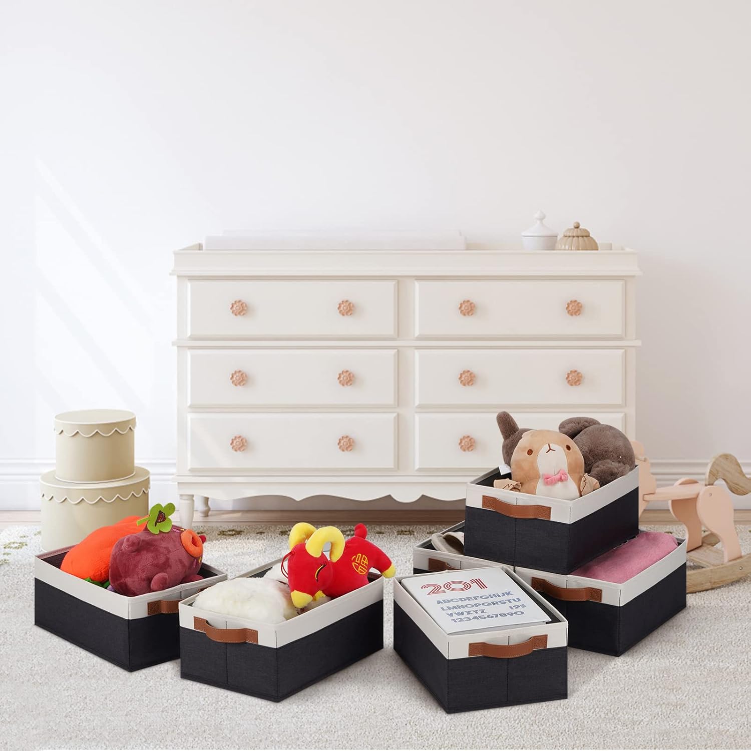 GhvyenntteS Storage Baskets for Organizing, Fabric Storage Bins with Leather H&les, Foldable Rectangular Storage Baskets for Shelves, Closets, Home, Office(Black/White, 6 Pack)11.8X7.9X5.1 in