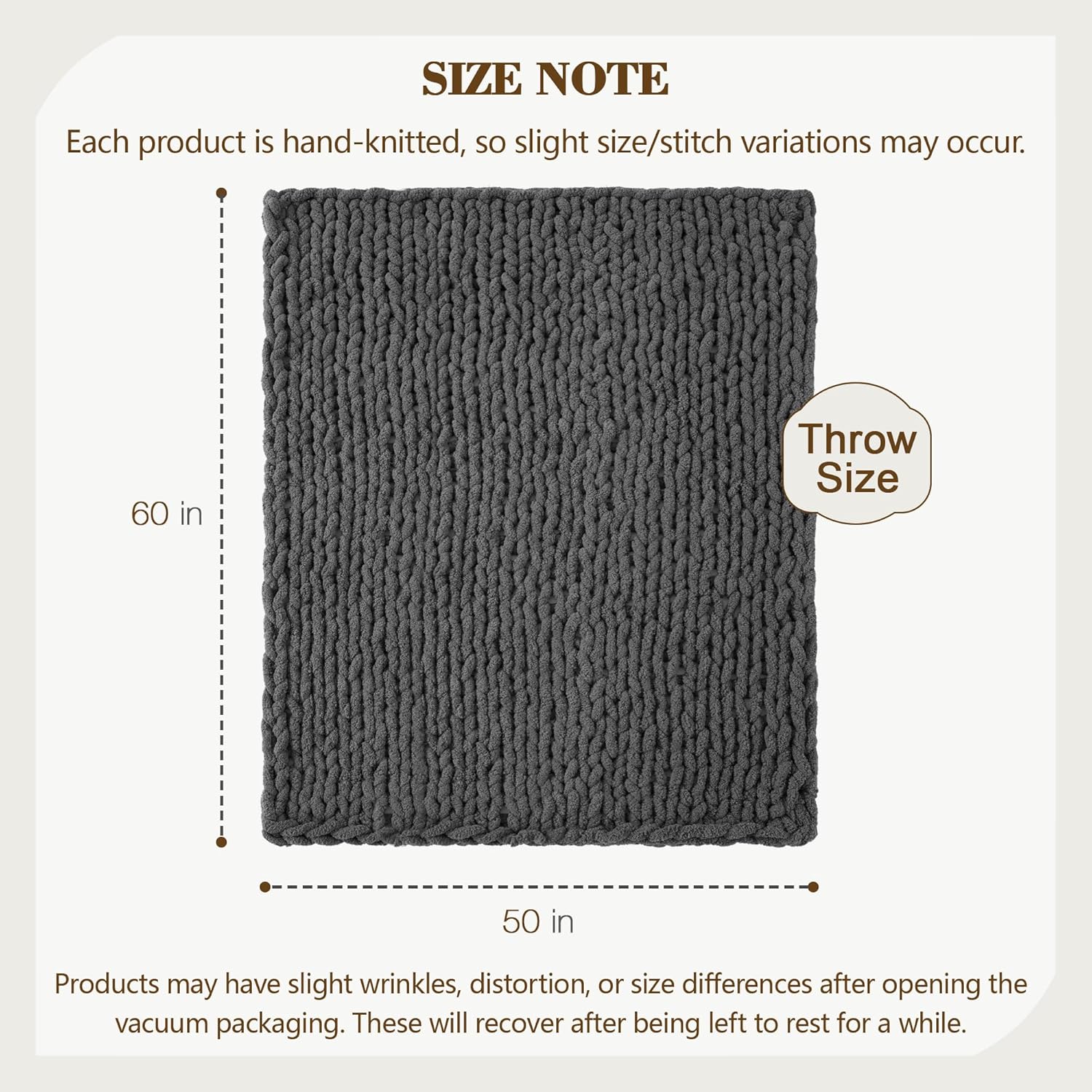 Carriediosa Chunky Knit Throw Blanket 50" X 60", 100% Hand Made Large Chenille Loop Yarn Soft Fluffy Throws for Couch Sofa Bed, Big Crochet Cozy Heavy Thick Cable Woven Blankets, Dark Grey
