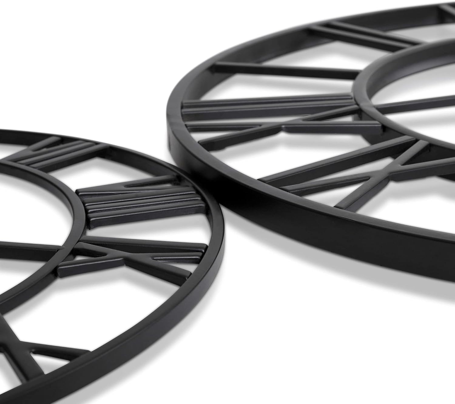 - [Easy to Read and Hang]-30" (75cm) Oversized large Roman numerals in contrast with aluminum large hands for easily reading. Simple design with a good performance. Package Comes with 1 set extra color interchangeable Clock Handsďźalso included Invisible Nail Hangers for simple hanging