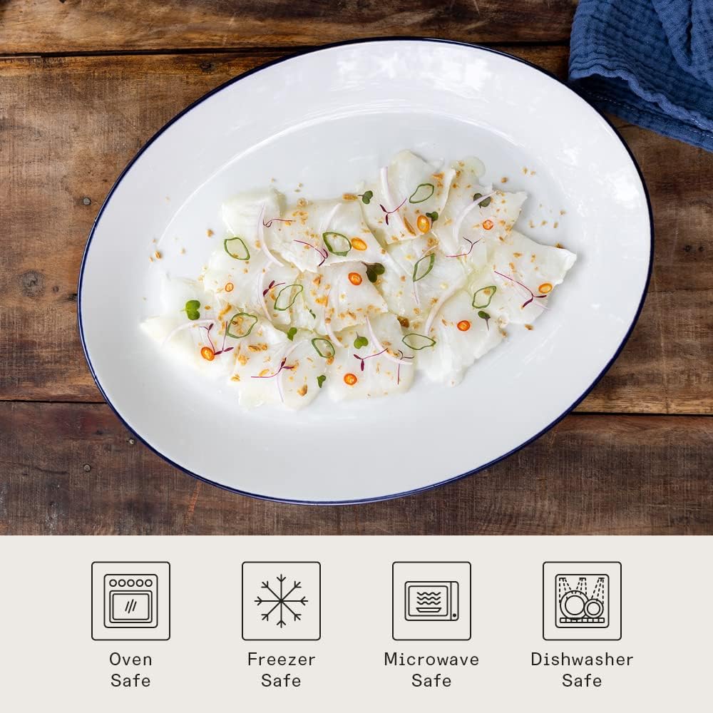 Made In Cookware - Serving Platter - White With Navy Rim- Porcelain England