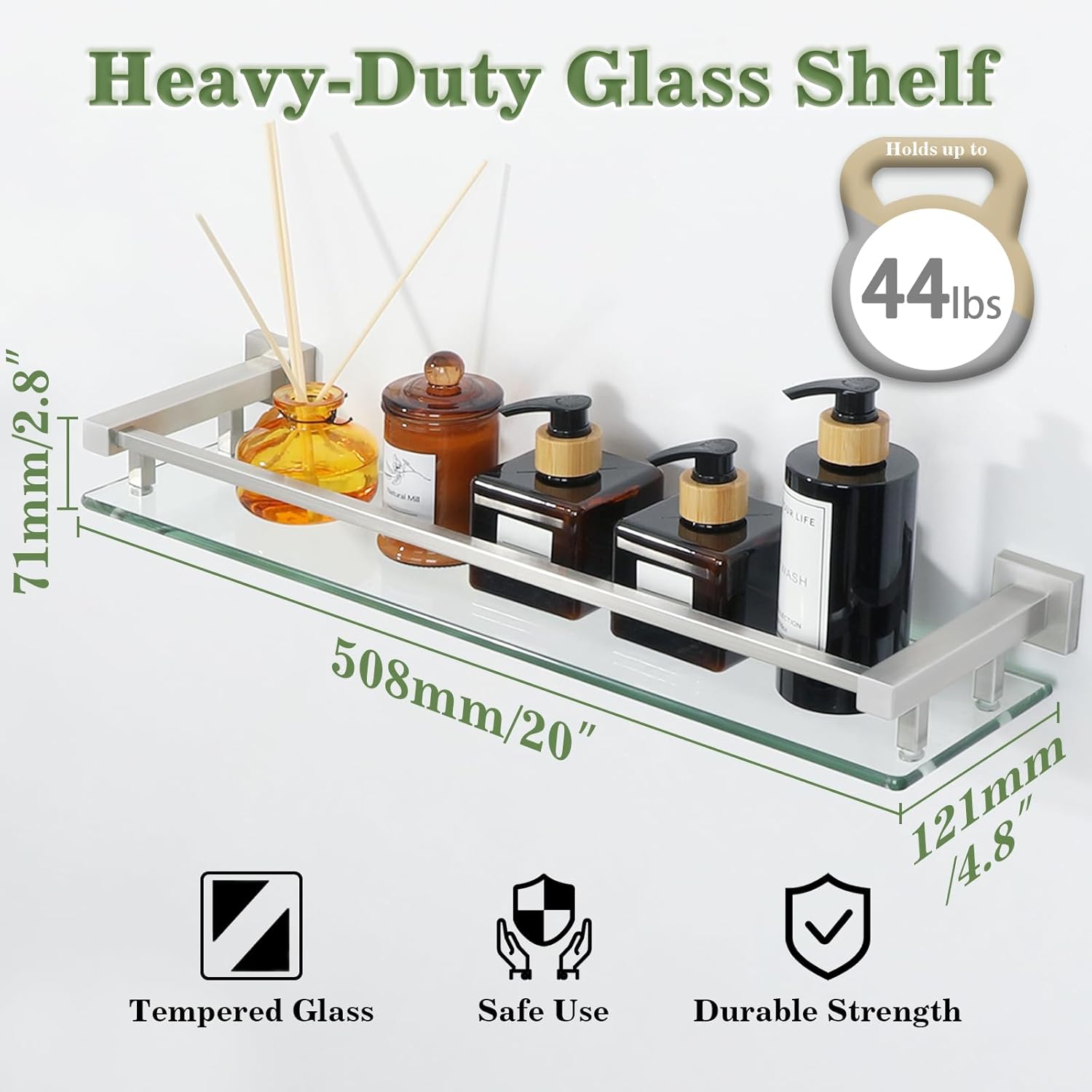 - TEMPERED GLASS:Our glass shelves are made with ultra-strong 8mm tempered glass and SUS304 stainless steel, ensuring a weight capacity that far exceeds standard shelves for reliable support
