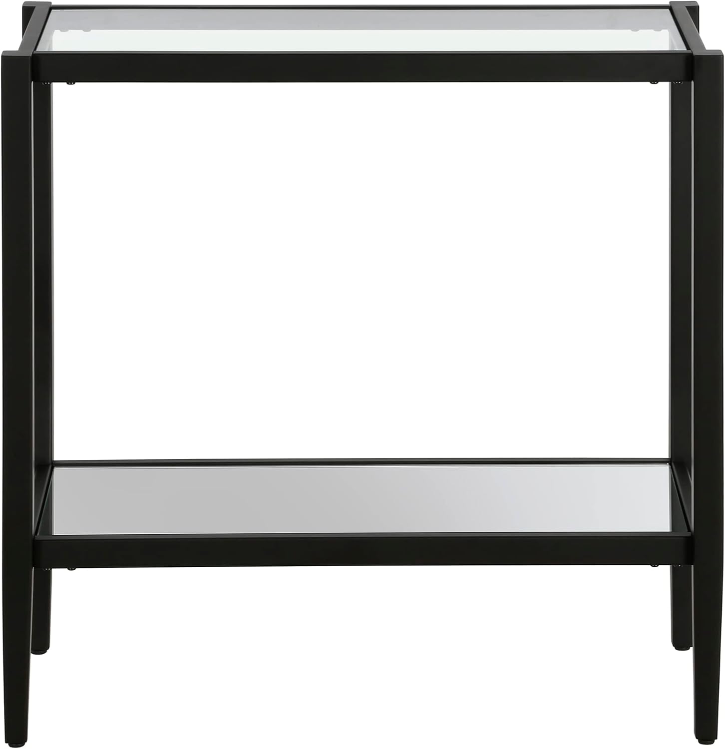 Henn&Hart 24" Wide Rectangular Side Table with Glass Shelf in Blackened Bronze, Table for Living Room, Bedroom