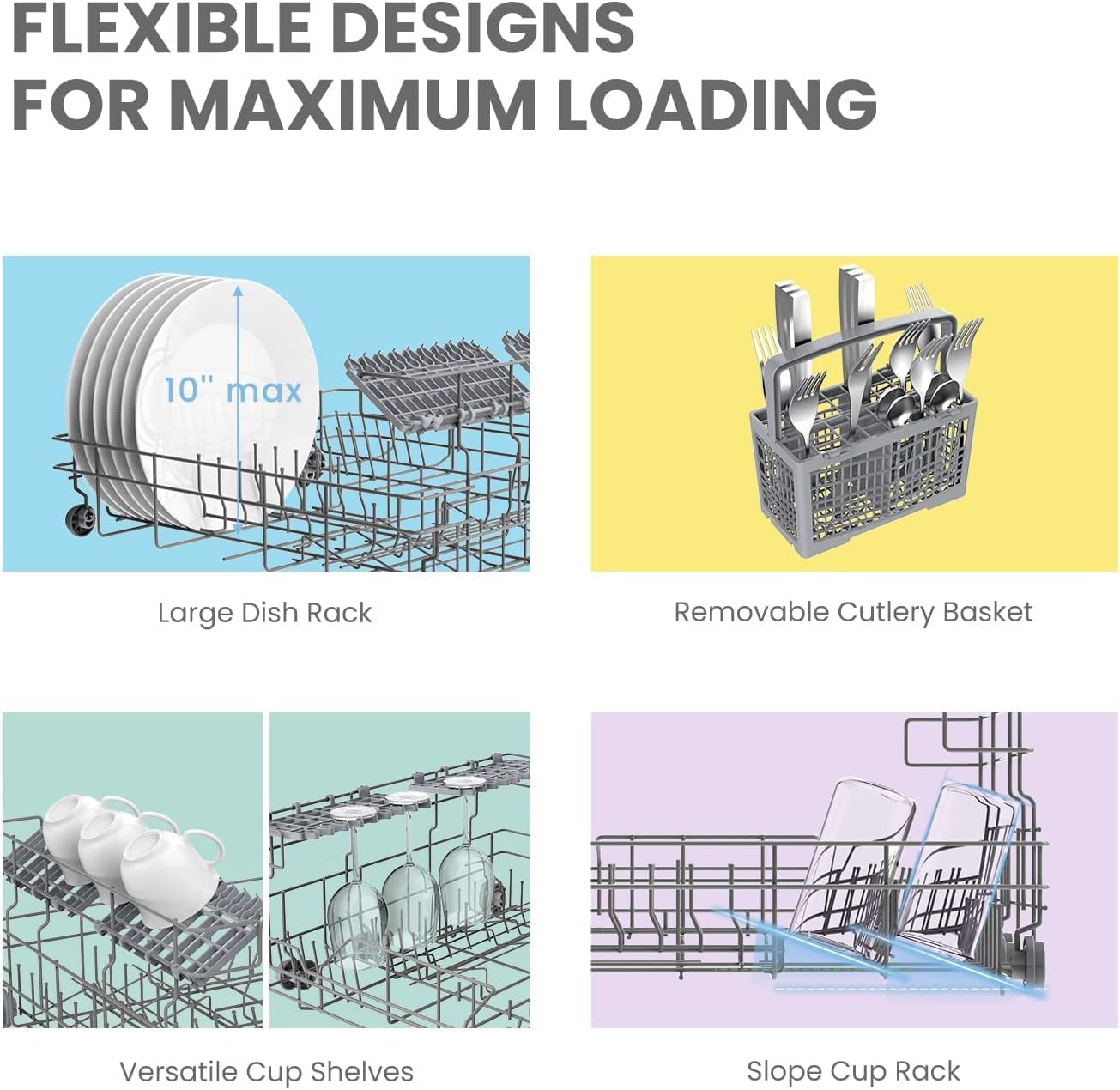 - 8 Washing Cycles- Most of the cleaning cycles, including Heavy, Normal, Baby-Care, ECO, Glass, and Speed, helped with extra-drying function, and deliver sparklingly cleaned and dried dishes. Three more cleaning options, including Speed, Mini-party, and Rinse, are designed for COMFEE' compact dishwasher, providing high flexibility for you to choose in different situations.