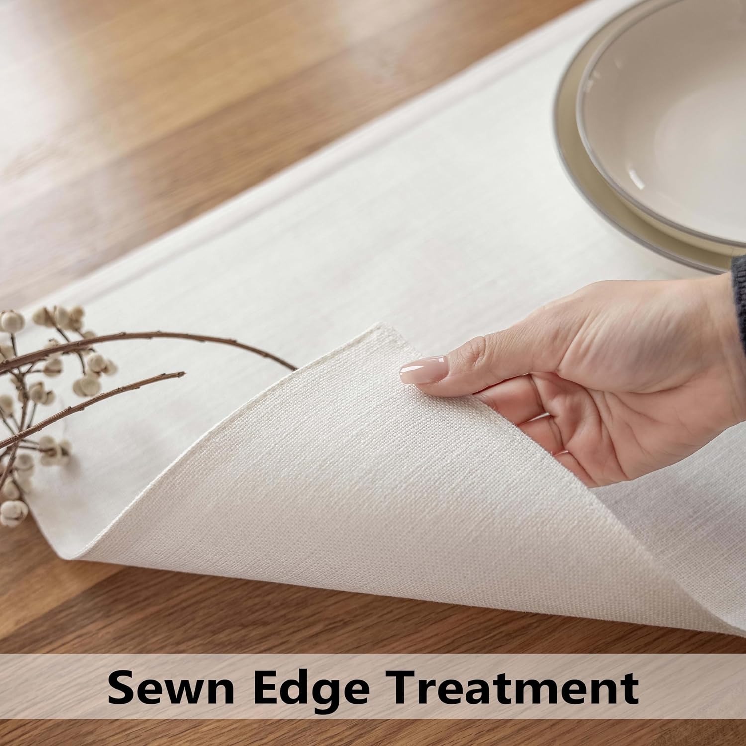 Demetex White Placemats Set of 4 Heat Resistant Cloth Place Mats Linen Dining Table Mats for Wedding Party Decor, Pure White