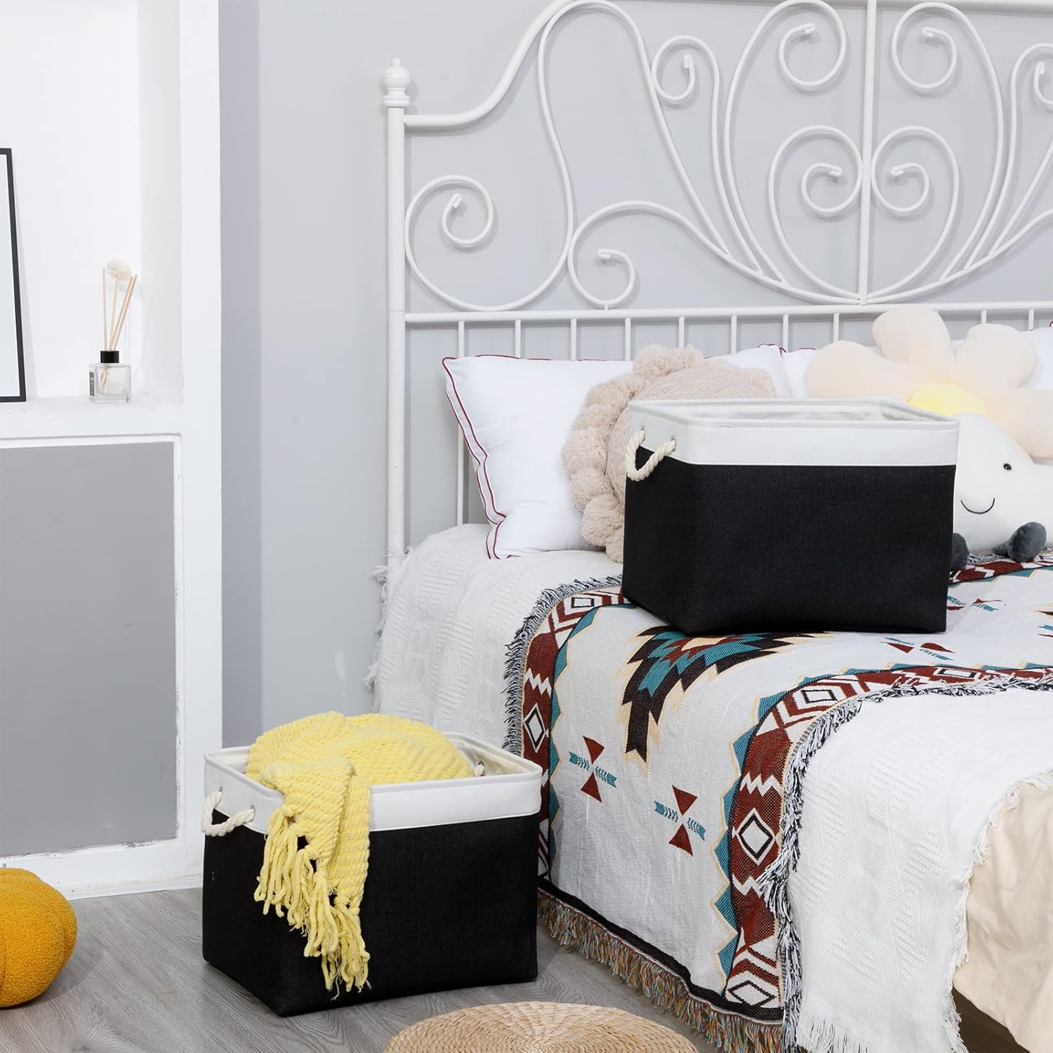 - Foldable Baskets Set: Simply fold the canvas basket down flat for space-saving storage when not in use or when needing to transport. If you mind the creases, you can use an iron to iron the creases in the basket. If you do not use an iron, the creases will slowly disappear as you store your items