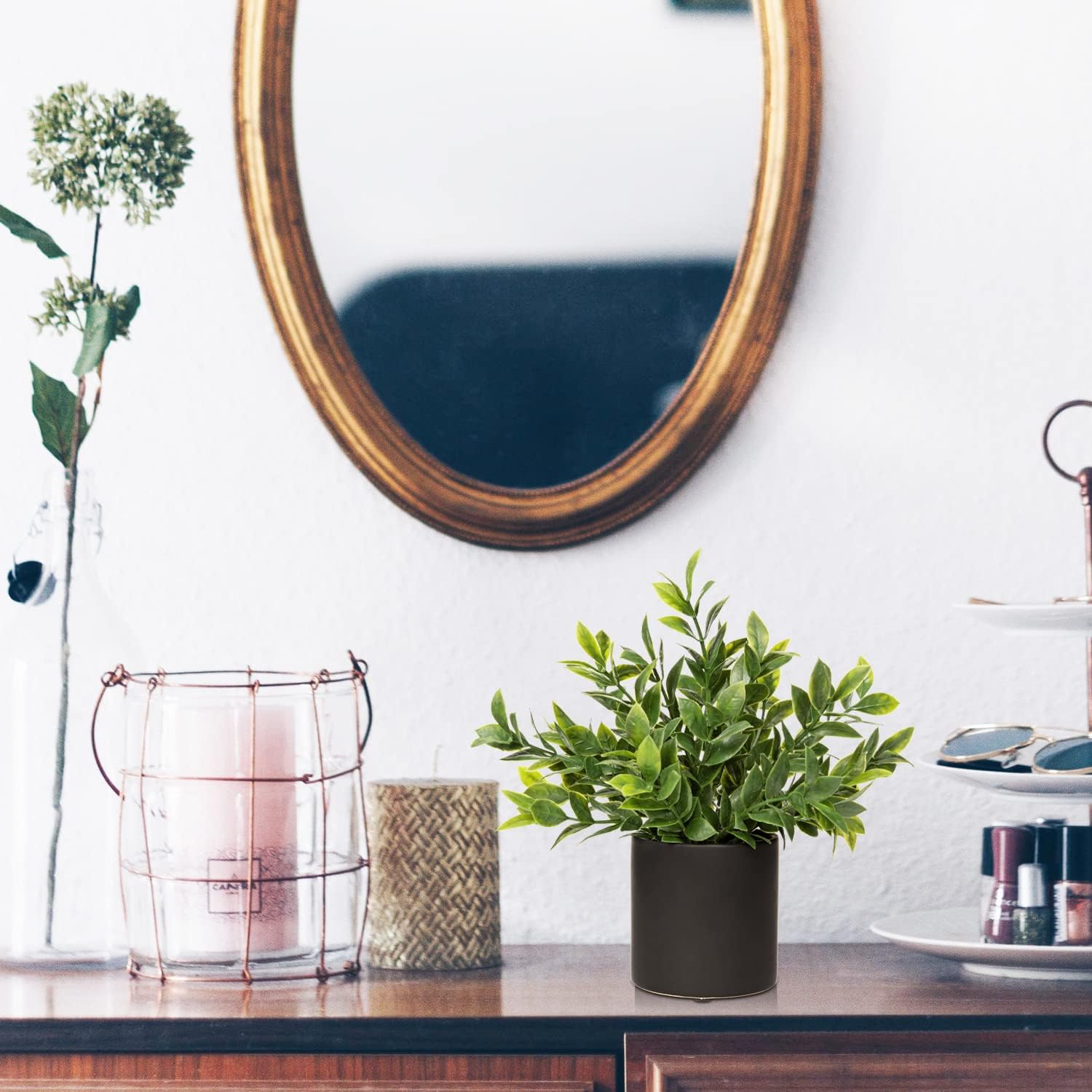 - Artificial Plants For Home Decor Indoor - Artificial potted plants are ideal for home or office decor, which can help us relax and brighten the space. Such as bathroom plants decor, bedroom, kitchen, shelves, cabinets, windowsill, fireplace mantel,coffee tables, dining table, toilet tank, countertop,or any indoor or outdoor space that wants to add vitality.Small plants decor also make a great gift for housewarming parties, weddings and holidays.
