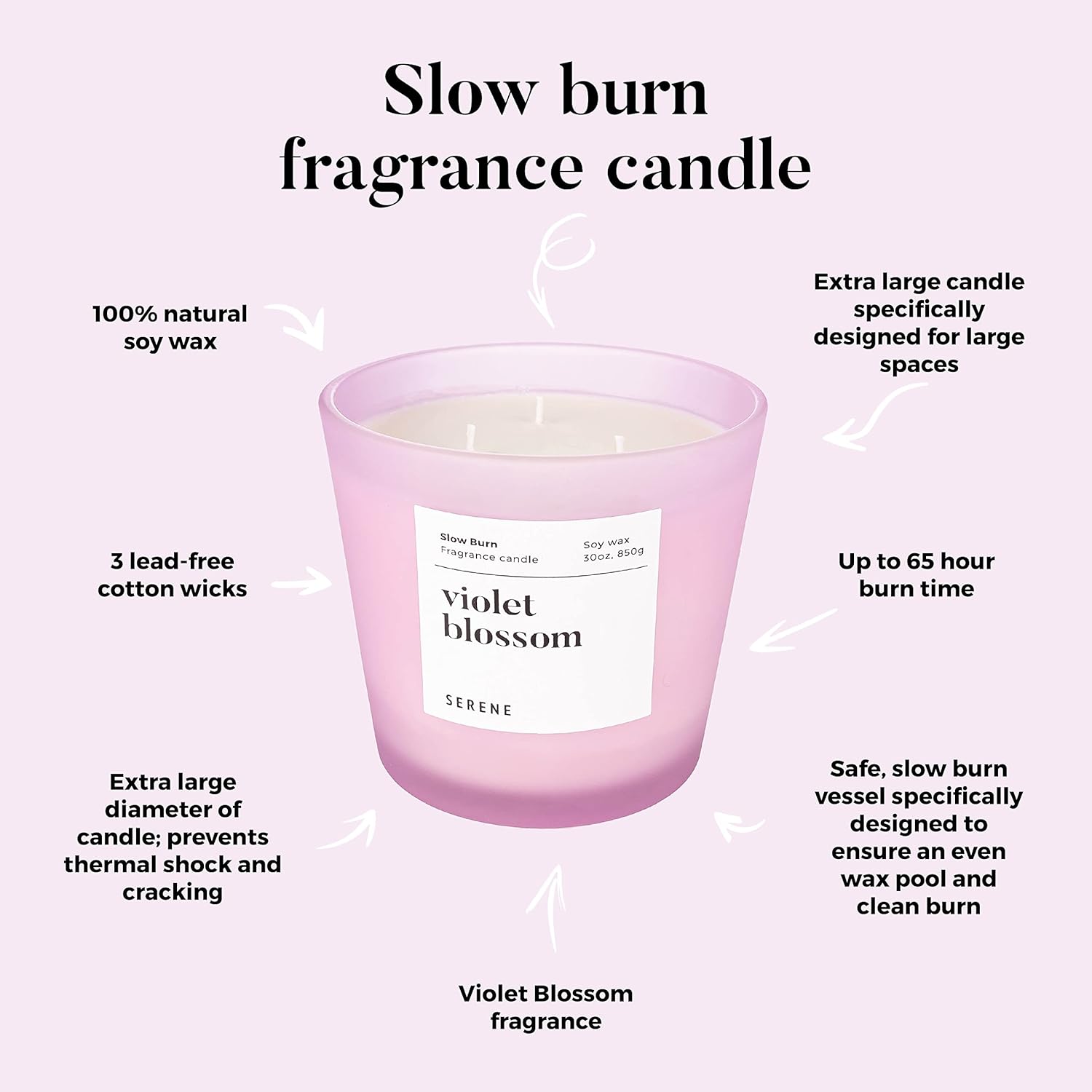Hidden Label Large Scented Candle, Violet Blossom, 30oz 3 Wick Huge Candle, Serene Collection Slow Burn Natural Soy Candles for Home Scented