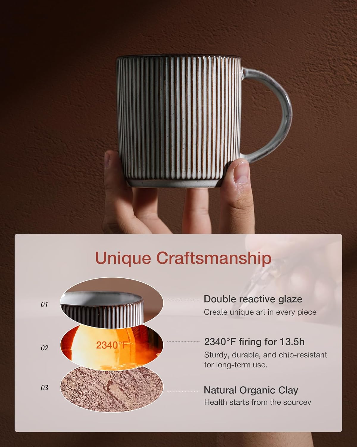 - WITHSTAND THE TEST OF TIME: These coffee mugs are made of organic and natural clay, fired at 2340 â for 13.5 hours to make them sturdy, long-lasting, and chip-resistant for long-term use