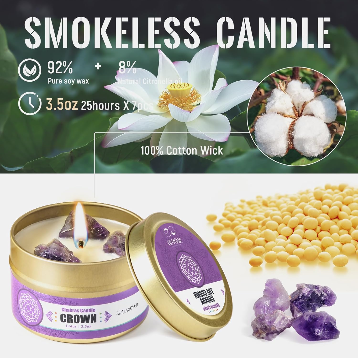 AOOVOO Chakra Candles with Healing Crystals - 7 Chakra Candle Set, Spiritual Gifts for Women, Aromatherapy Candle, Soy Candles for Women