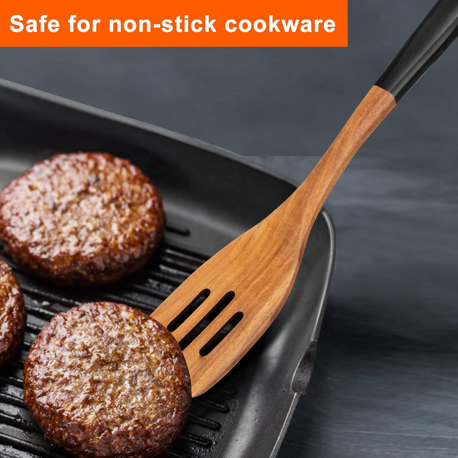 14 Inch Large Wooden Spoons for Cooking Utensils Set Acacia Wood Spatula Slotted Spoon Best Non Toxic Kitchen Utensil Long Mixing Spoon Spatulas Turner Stirring Serving Spoons Kitchen Use Tools