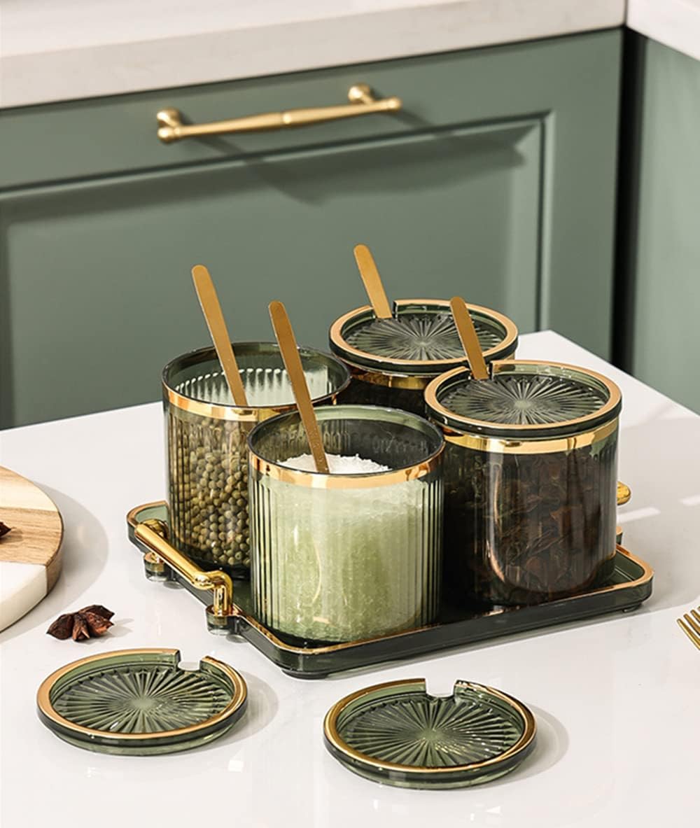 - ▲▲【Material】: Transparent thickened acrylic condiment container, made of PP plastic, equipped with 6 metal spoons and a practical tray with a handle, sturdy and corrosion-resistant, it can be effectively stored while decorating home life, adding color