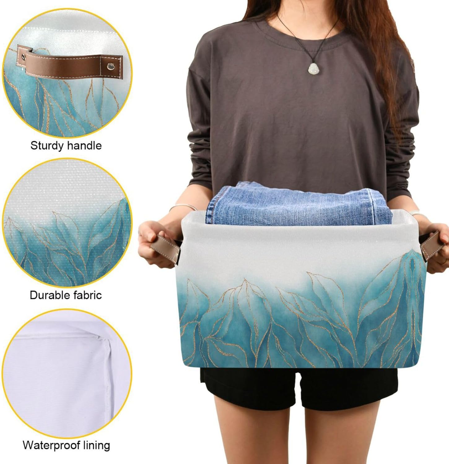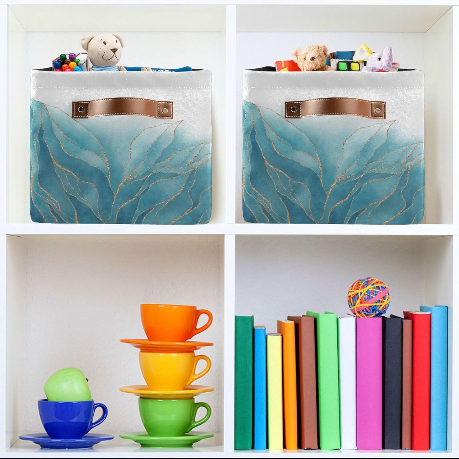 susiyo Foldable Storage Bins Storage Cubes Bin Baskets for Shelves with Handles Decorative Fabric Storage Baskets for Organizing Shelves Closet Nursery Home Toys 2 Pack,Luxury Blue Golden