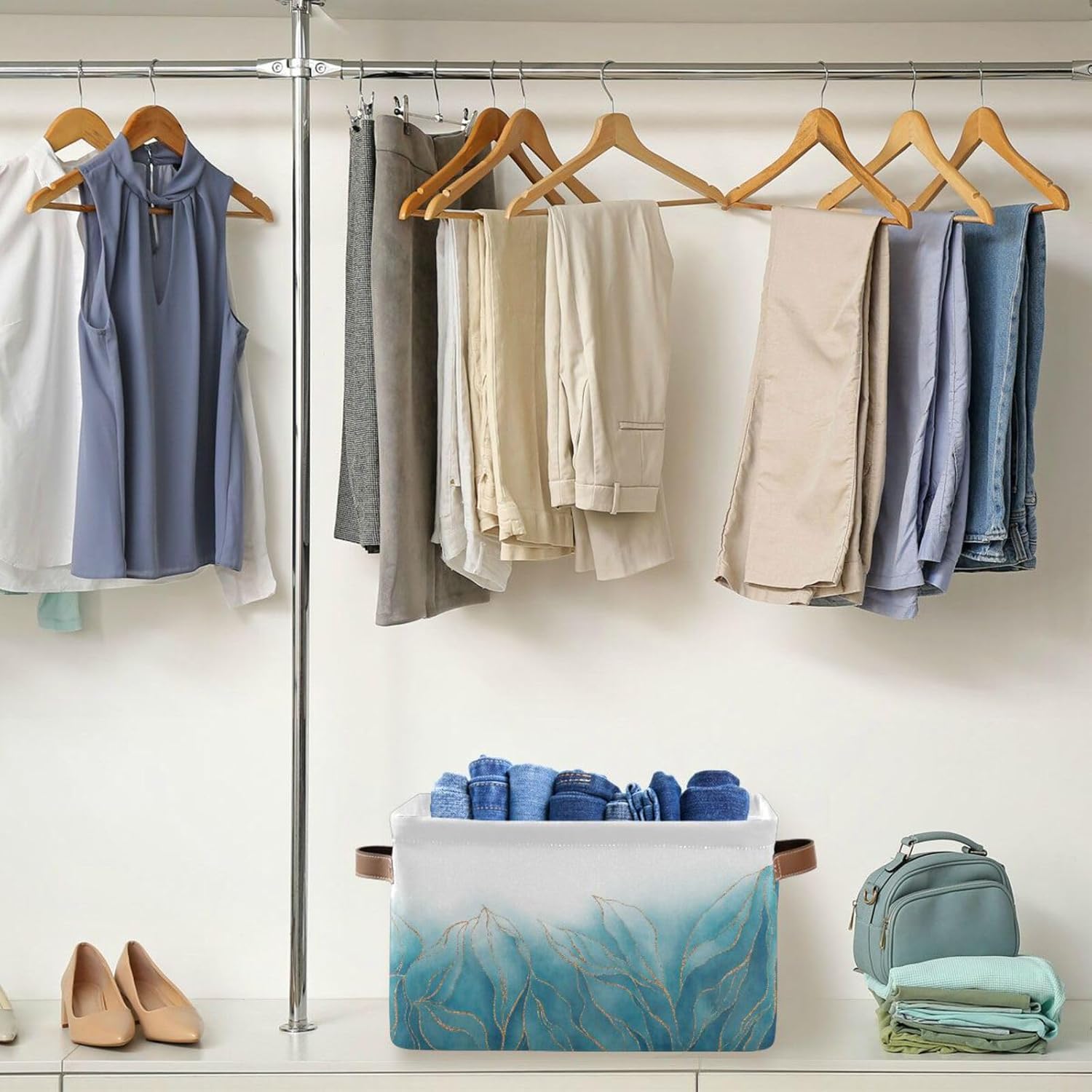 - DECORATIVE CLOSET ORGANIZER: The different patterns of this storage box could decorate any room in your home or office! Brown Faux Leather handles on the sides add a classic touch, able to match most of your home decorations and styles. This storage baskets are not only household staples in helping with your home organizational projects, but also doubles as a charming decoration. To Live Simple. To make your HOME SWEET HOME