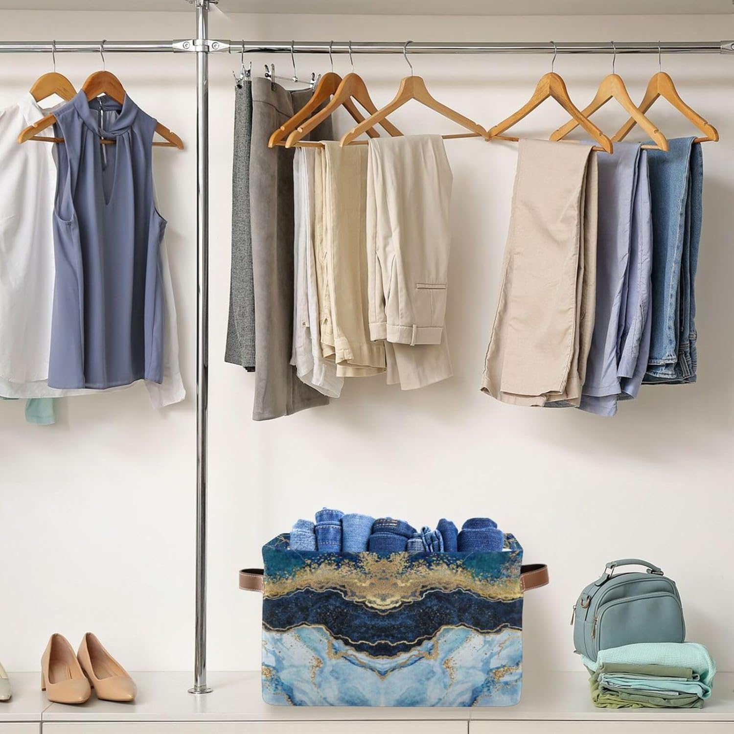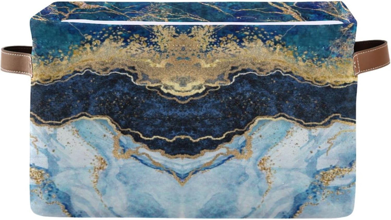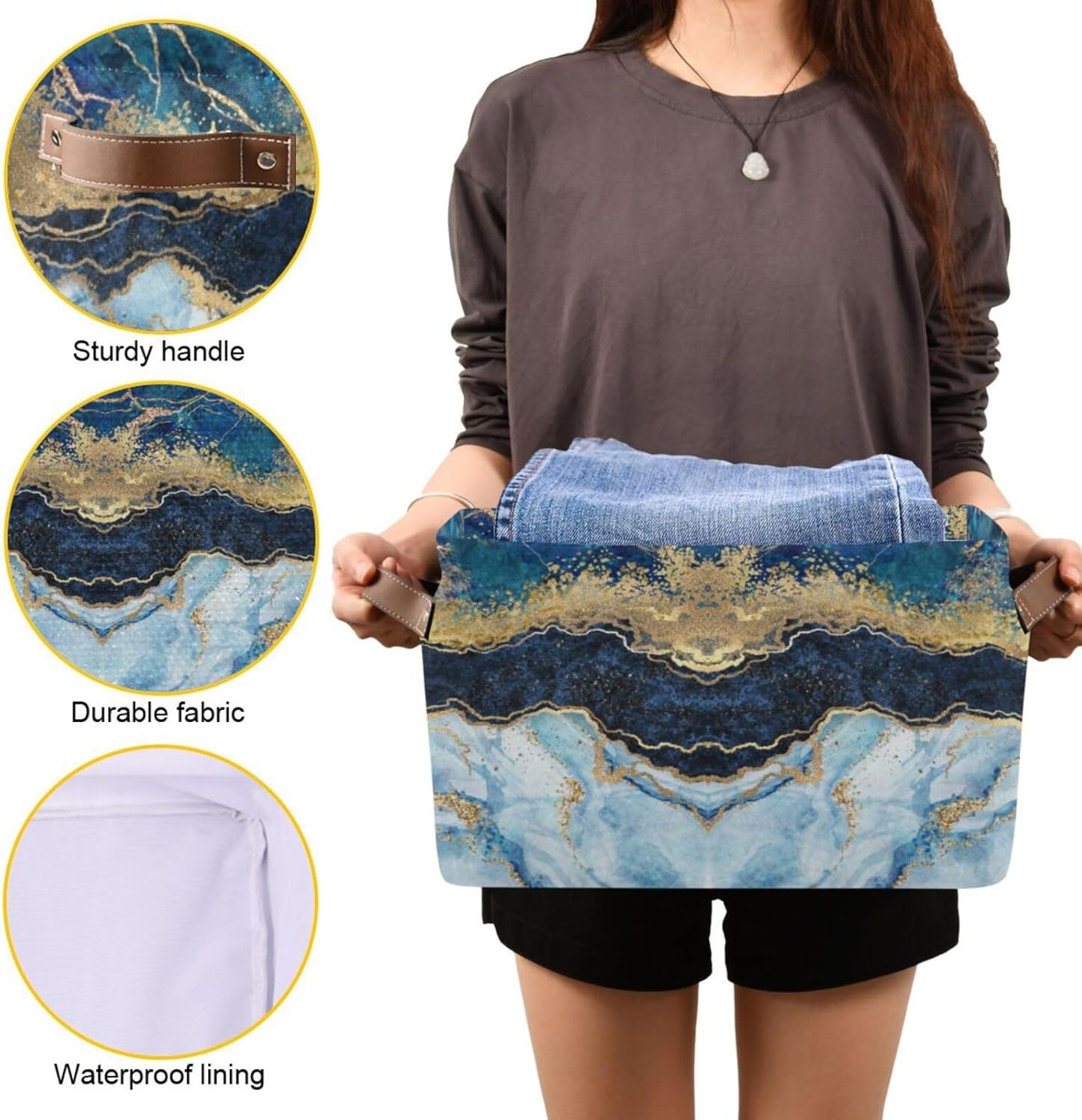 susiyo Storage Baskets for Shelves,Storage Bins for Organizing Shelf Nursery Toys, Decorative Linen Fabric Bins Cube with PU Handles 1 Pack,Blue Marble