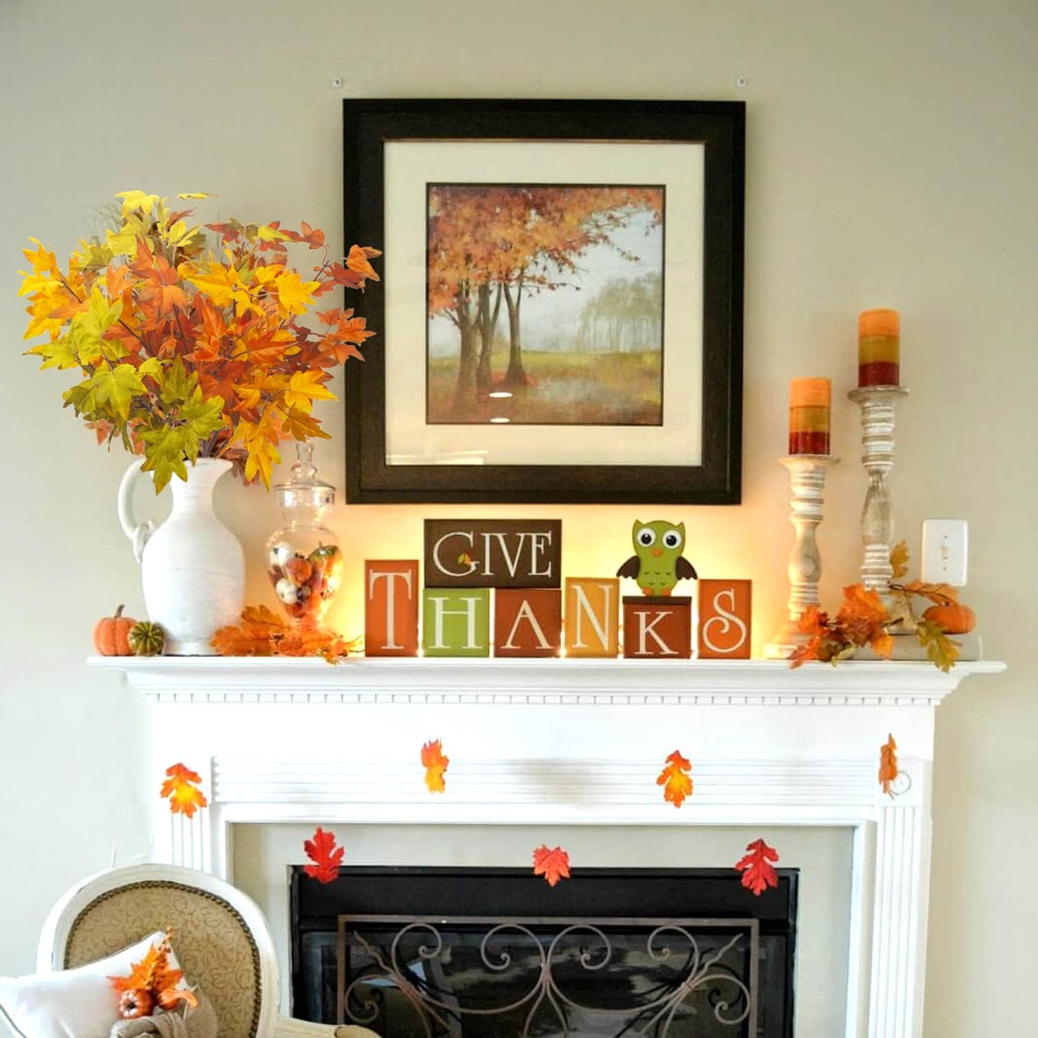 - 🍁🌾【Unique Fall Design】- Maple leaf branch is perfect for Indoor, Outdoor, Autumn, Wedding, Door, Fireplace, Thanksgiving, Festival, and Dinner Party.
