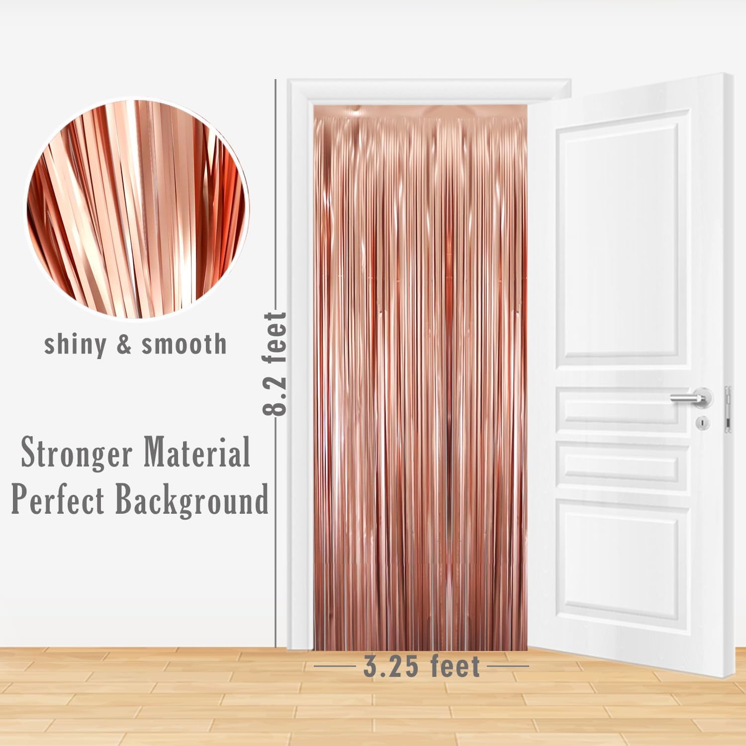 - Package Includes:3 pack matte rose gold foil fringe curtains,3.2 ft x 8.2 ft each,suitable for hanging on a door or coverage a wall fully