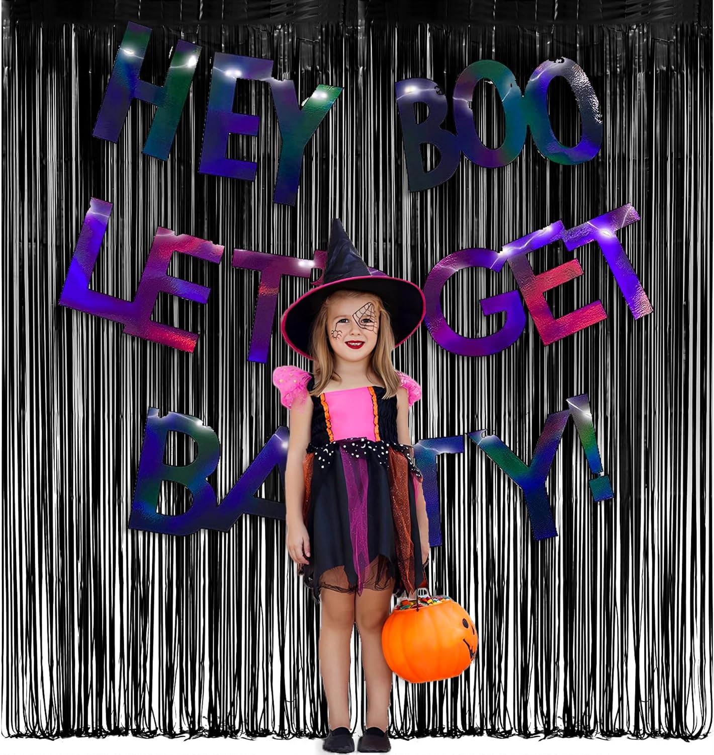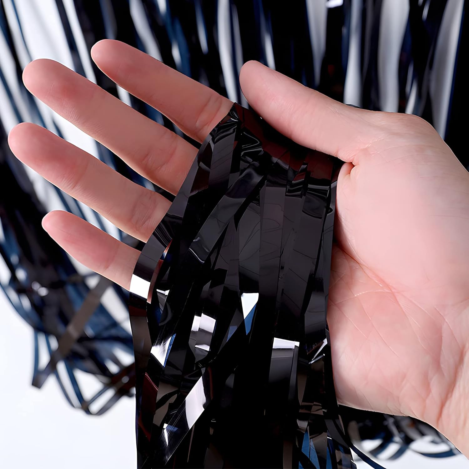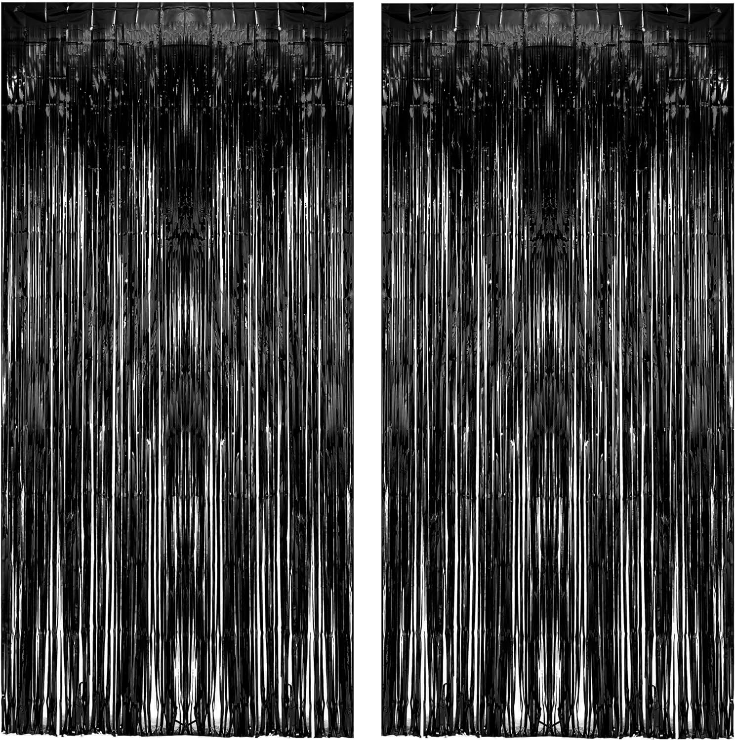 - Greatril brand 2 packs, 3.2ft x 8.2ft foil fringe tinsel curtain good for gothic wednesdays stranger theme halloweens party decoration.