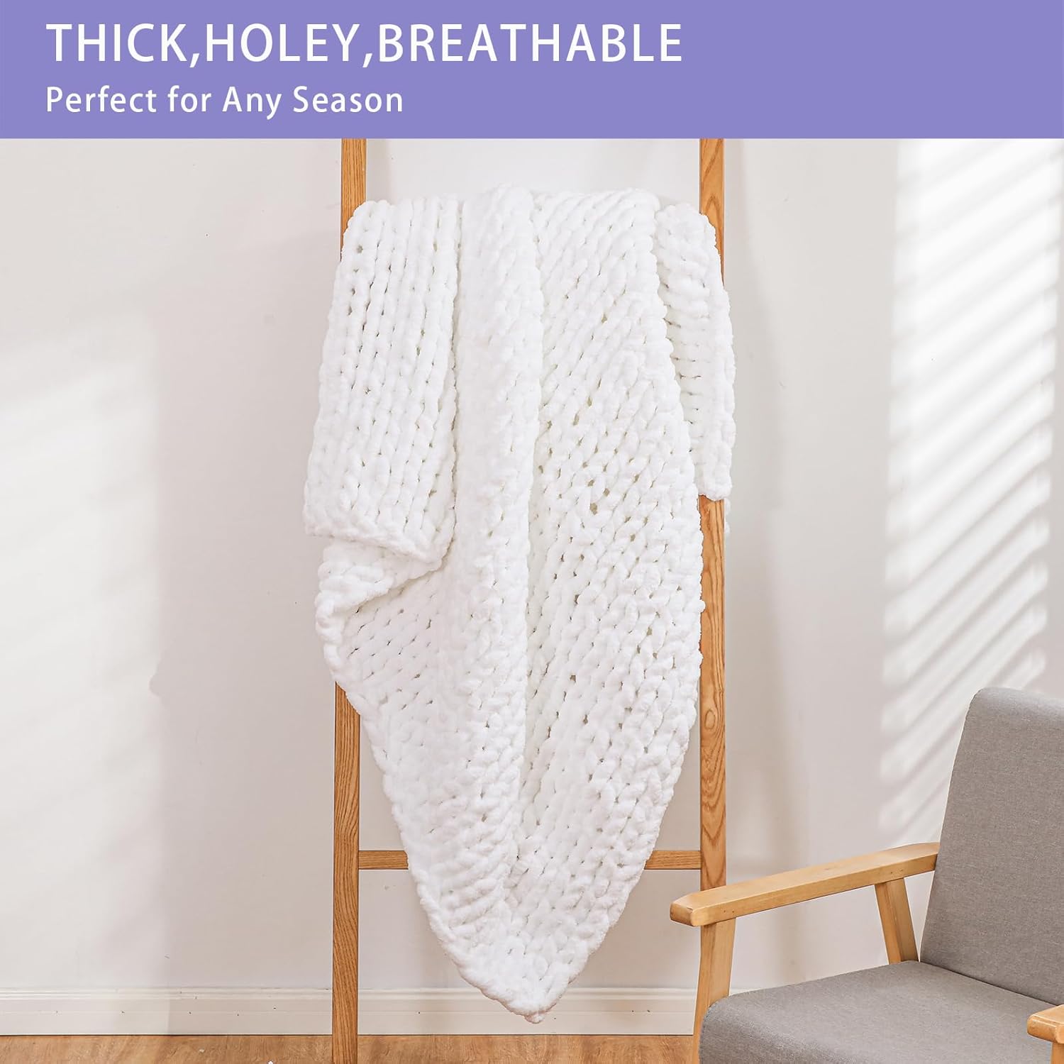 - Holey Chunky Knit Blanket: Our chunky throw blanket is 100% hand knit with cute holes, the special holey feature and classtic pattern make this plush blanket a great art dĂŠcor throw blanket for couch, bed and sofa, bringing you warmth without overheating