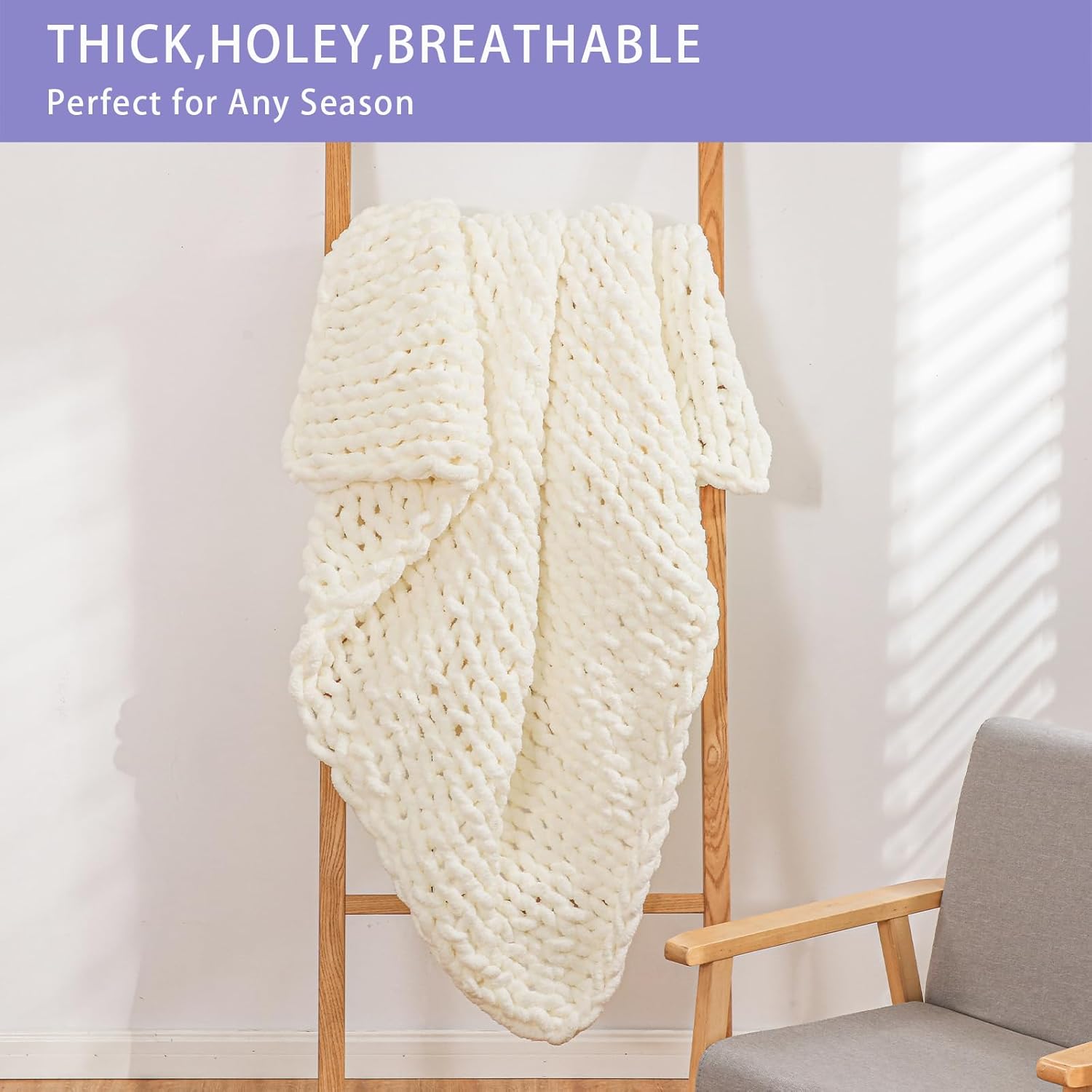 - Holey Chunky Knit Blanket: Our chunky throw blanket is 100% hand knit with cute holes, the special holey feature and classtic pattern make this plush blanket a great art dĂŠcor throw blanket for couch, bed and sofa, bringing you warmth without overheating