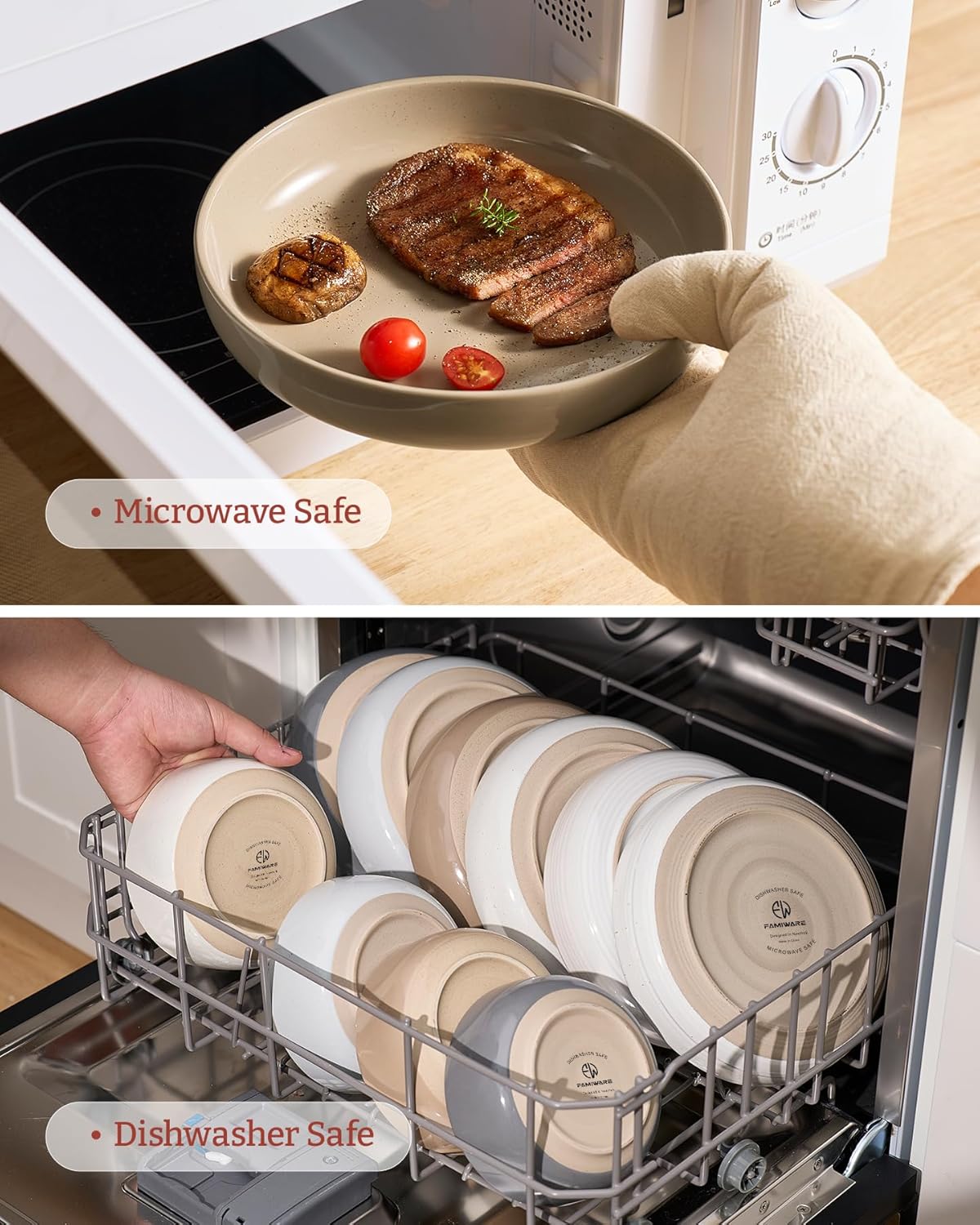 - 【DISHWASHER AND MICROWAVE SAFE】Our pasta bowls have passed microwave and dishwasher safe testing at internationally accredited laboratories. Each plate and bowl is dishwasher safe and microwave safe.